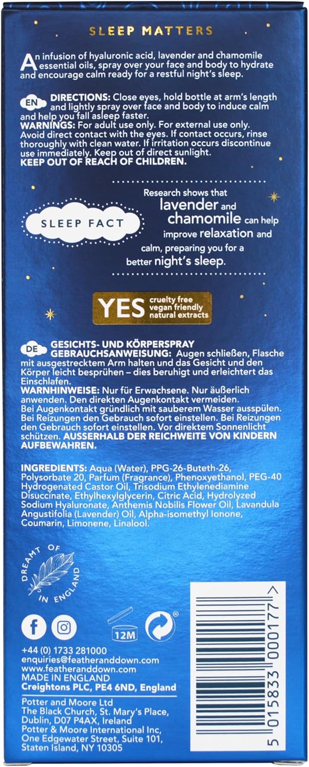 Feather & Down Sweet Dreams Face & Body Sleep Mist (100Ml) - With Calming Lavender & Chamomile Essential Oils. Cruelty Free & Vegan Friendly