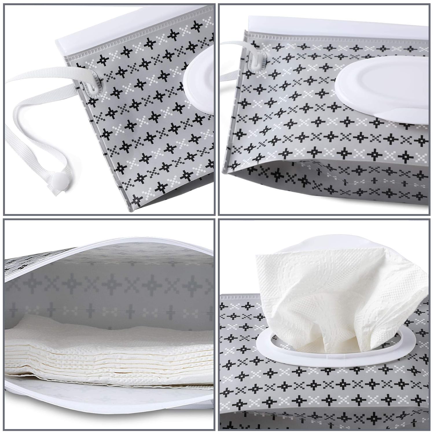 Febsnow 4 Pack Baby Wipe Dispenser, Portable Refillable Wipe Holder, Baby Wipes Container, Wipe Dispenser, Reusable Travel Wet Wipe Pouch (Geometric)