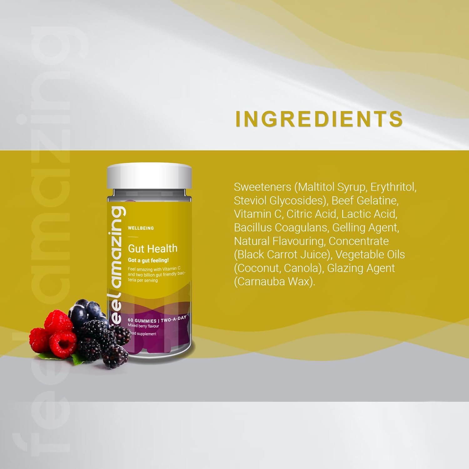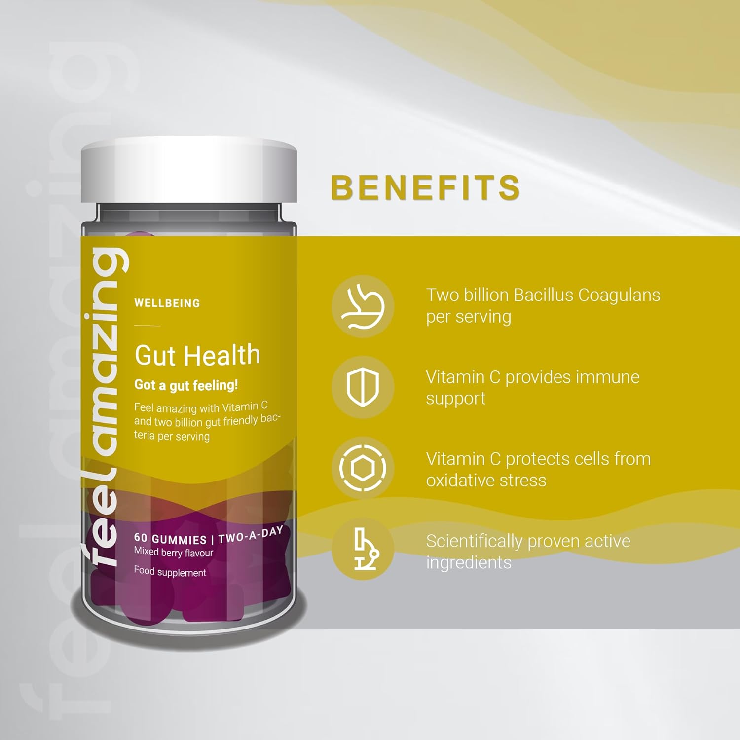 Feel Amazing Gut Health Probiotic Gummies - With 1 Billion Live Cultures & Vitamin C - 60 Orange-Flavored Gummies - 30-Day Supply (1)