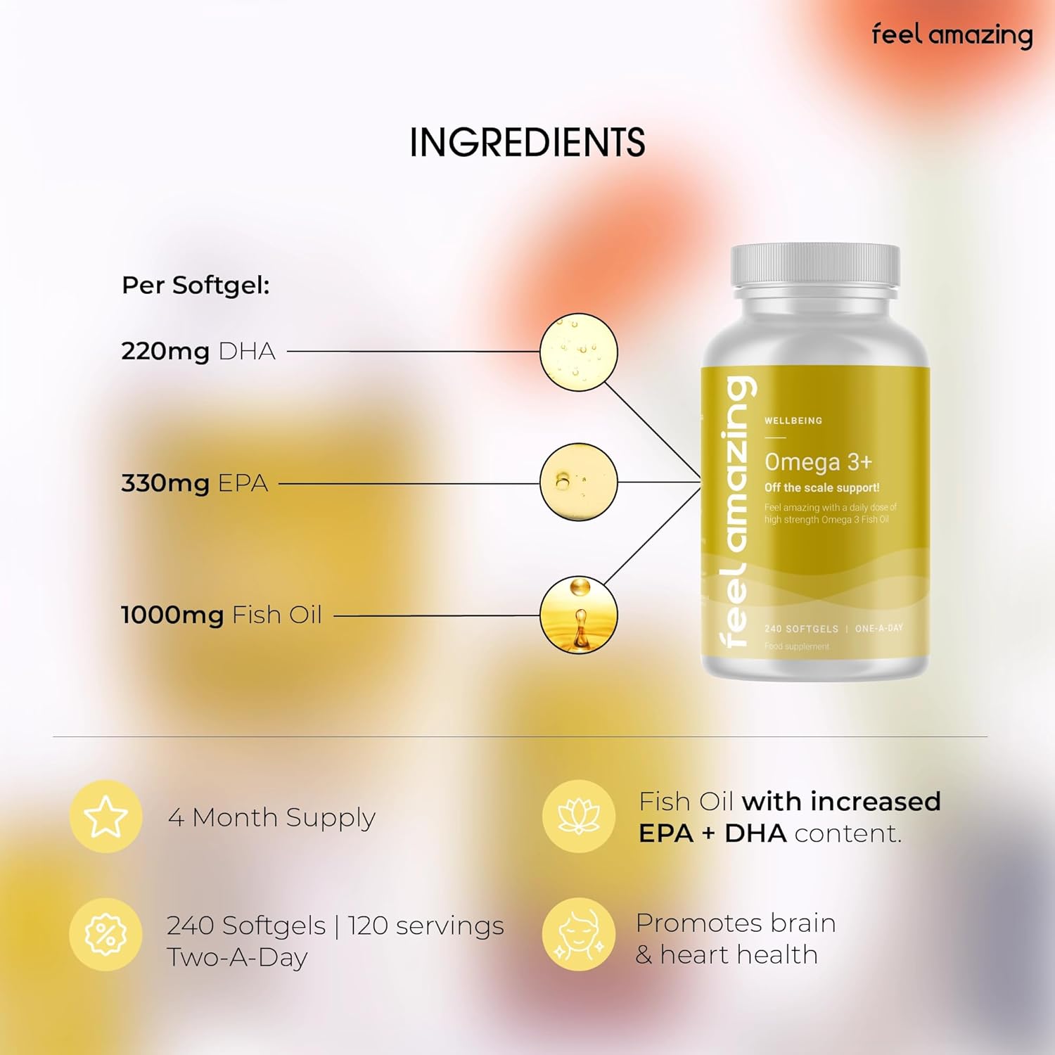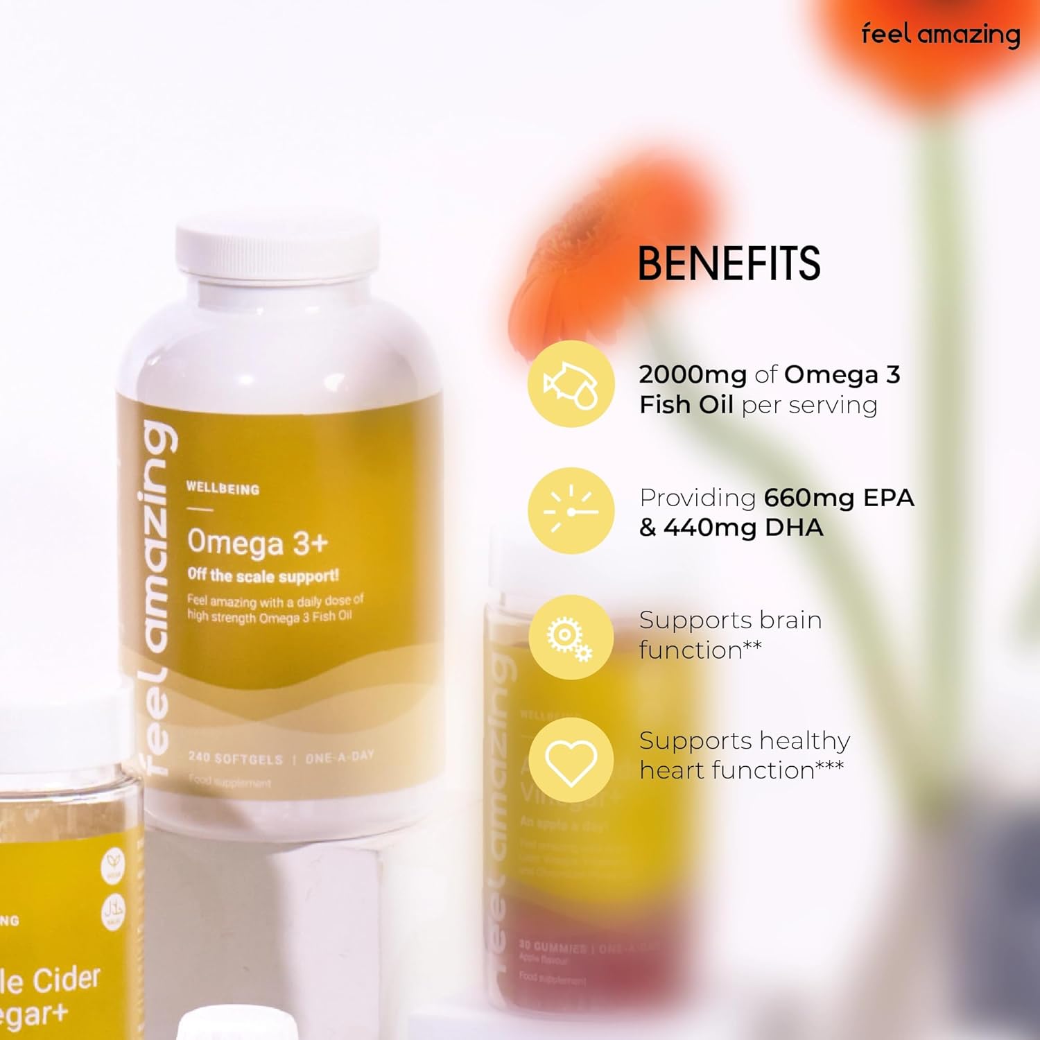 Feel Amazing Omega 3 Fish Oil 2000Mg – 240 Capsules – 660Mg Epa & 440Mg Dha Per Daily Serving – Supports Normal Heart Functional - 4 Month Supply