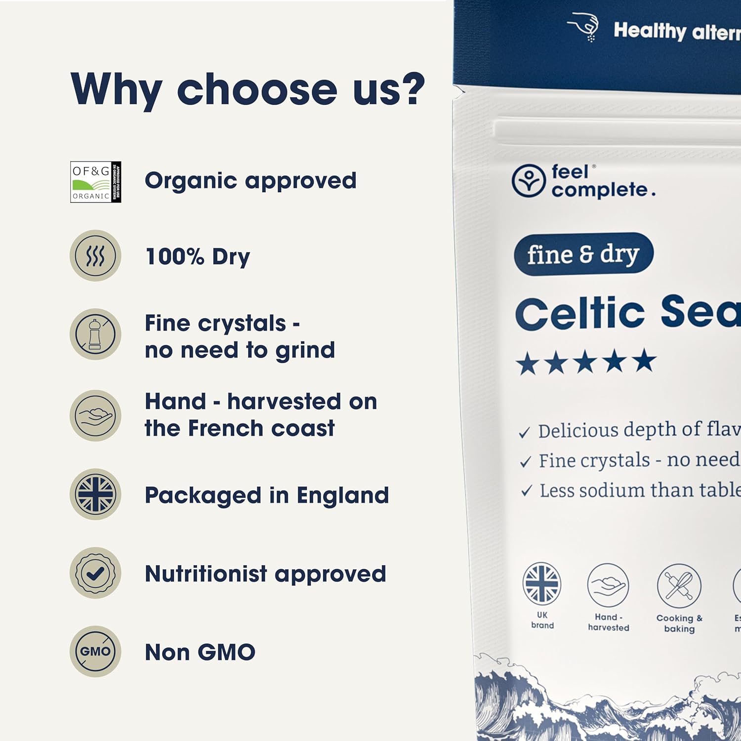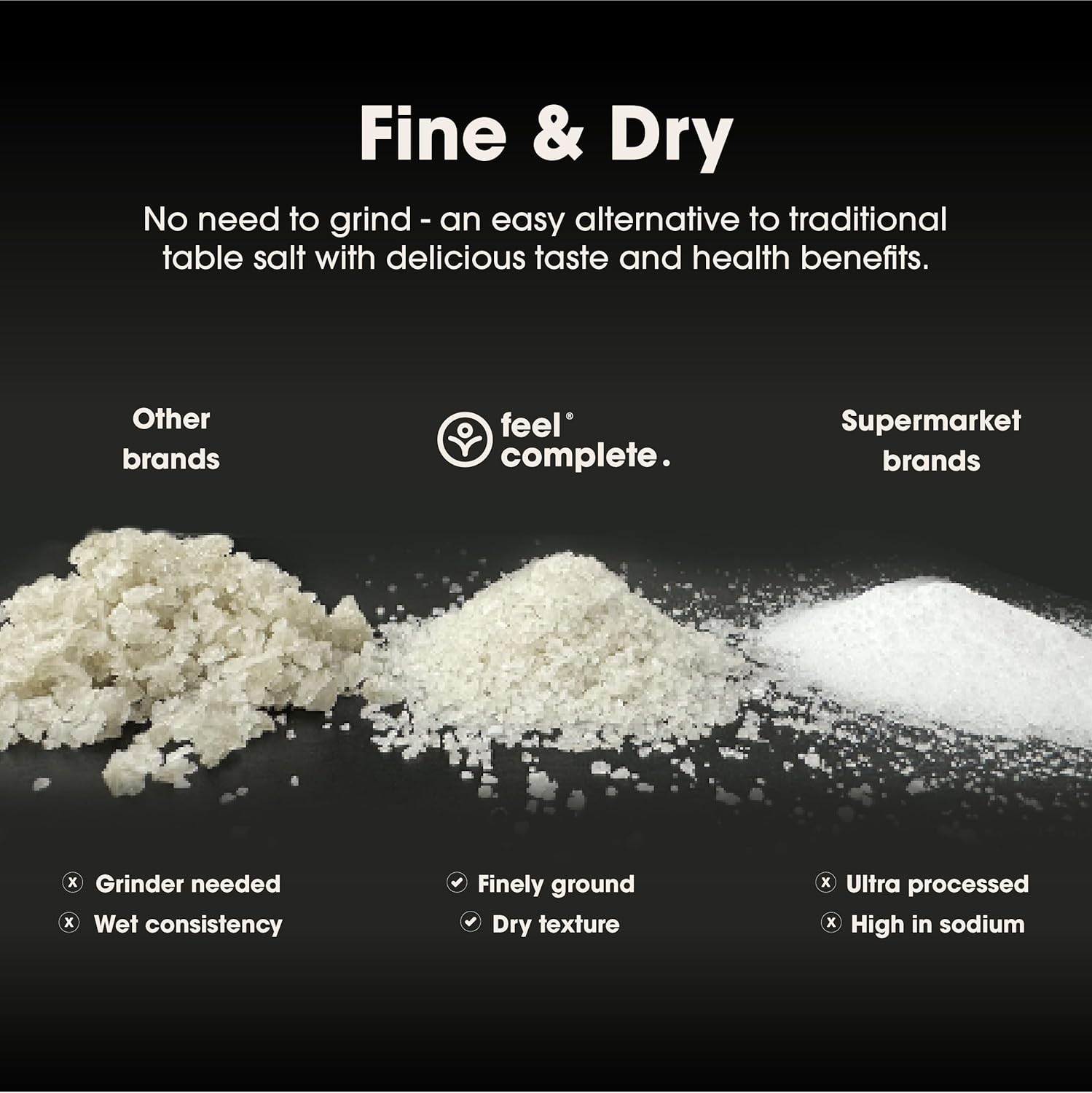 Feel Complete - 200G Fine & Dry Celtic Salt – No Grinding Needed – Organic Approved, 82 Essential Minerals – Healthy Celtic Sea Salt Organic Alternative To Table Salt