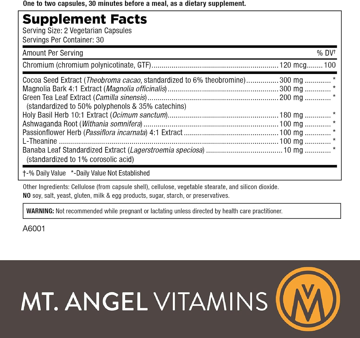 Mt. Angel Vitamin Company Feel Good is designed to help support stress naturally. It features cocoa seed extract, magnolia bark, green tea, holy basil, ashwaganda, passionflower, L-theanine and banaba leaf extract. Feel Good contains no corn, soy, salt, yeast, gluten, milk and egg products, sugar, starch or preservativesShipping cost is based on weight. Just add products to your cart and use the Shipping Calculator to see the shipping price.