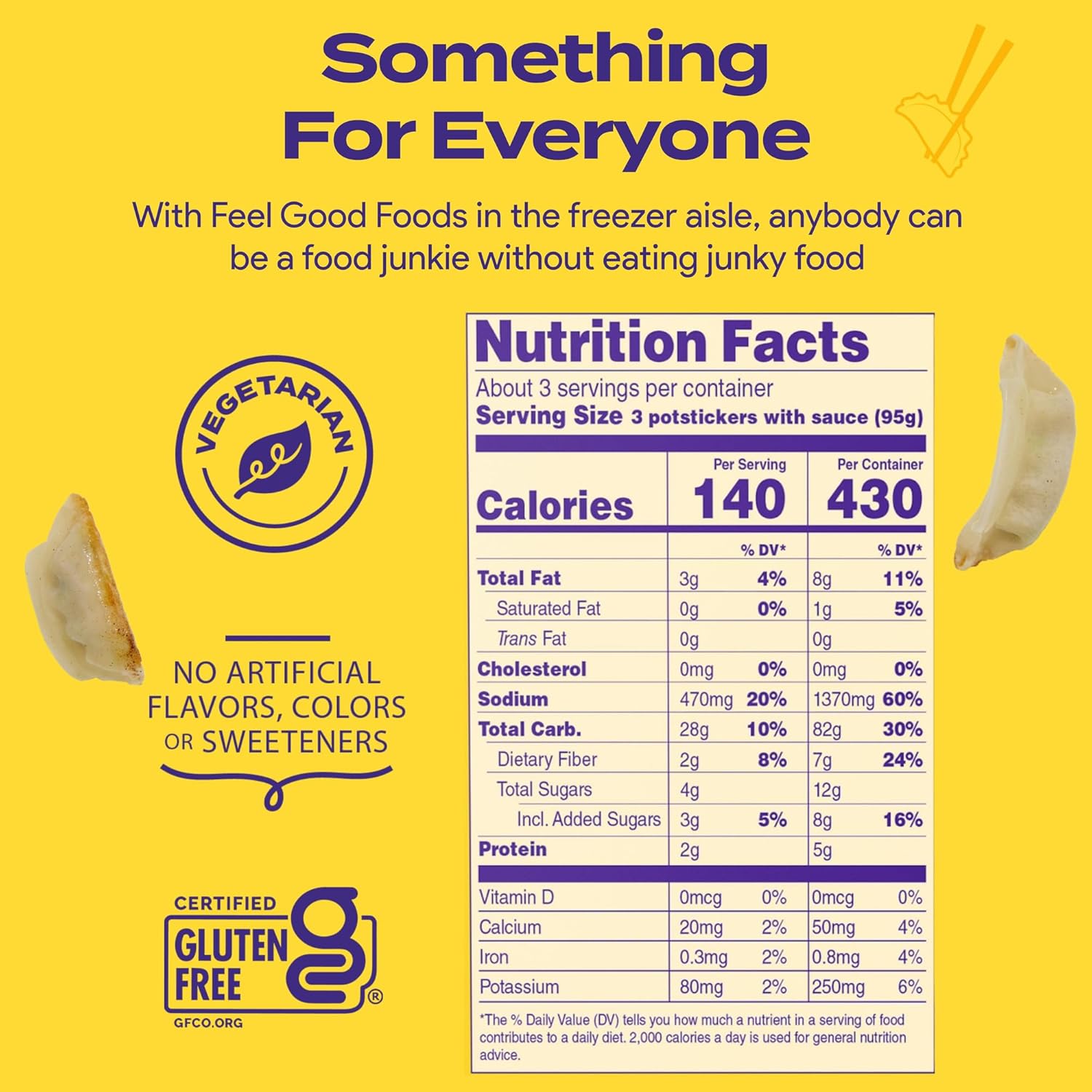 Feel Good Foods Vegetable Potstickers 10Oz Frozen Dumplings With Tamari Dipping Sauce, Gluten Free