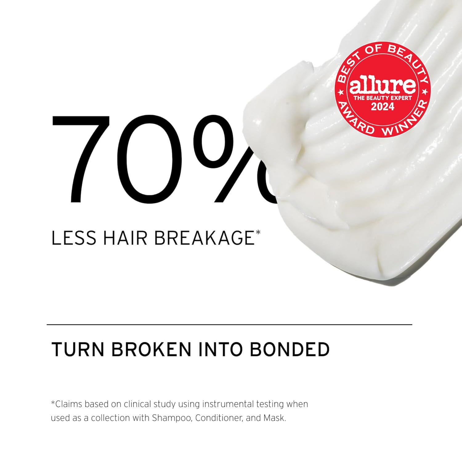 About this item REPAIR MASK - Turn broken into bonded! Our hair repair mask delivers triple action: bonding, repair, and protection for 3X stronger and 4X smoother hair with intense nourishment and shine. It completely repairs 56% of split ends after one use. KEY BENEFITS - Our hair mask is designed to deliver 70% less hair breakage and repair broken hair bonds, severe damage, and physical breakage with never-ending split ends. It boosts strength, adds shine & detangles for hair that is 7X more hydrated. INGREDIENTS - PowerBond penetrates into hair and repairs broken bonds. Prodew 500 strengthens and adds shine, while smoothing and detangling the hair. Coconut and Jojoba Oils deeply nourish and strengthen hair to prevent breakage. DETAILS - Scent is rich yet sheer tonka beans and almonds with creamy woods. Safe for all hair types, including keratin/color-treated hair. Clean, vegan, cruelty free, and sustainable & free of sulfates, silicones, parabens, phthalates, and gluten. See more product details,REPAIR MASK - Turn broken into bonded! Our hair repair mask delivers triple action: bonding, repair, and protection for 3X stronger and 4X smoother hair with intense nourishment and shine. It completely repairs 56% of split ends after one use,KEY BENEFITS - Our hair mask is designed to deliver 70% less hair breakage and repair broken hair bonds, severe damage, and physical breakage with never-ending split ends. It boosts strength, adds shine & detangles for hair that is 7X more hydrated,INGREDIENTS - PowerBond penetrates into hair and repairs broken bonds. Prodew 500 strengthens and adds shine, while smoothing and detangling the hair. Coconut and Jojoba Oils deeply nourish and strengthen hair to prevent breakage,DETAILS - Scent is rich yet sheer tonka beans and almonds with creamy woods. Safe for all hair types, including keratin/color-treated hair. Clean, vegan, cruelty free, and sustainable & free of sulfates, silicones, parabens, phthalates, and gluten
