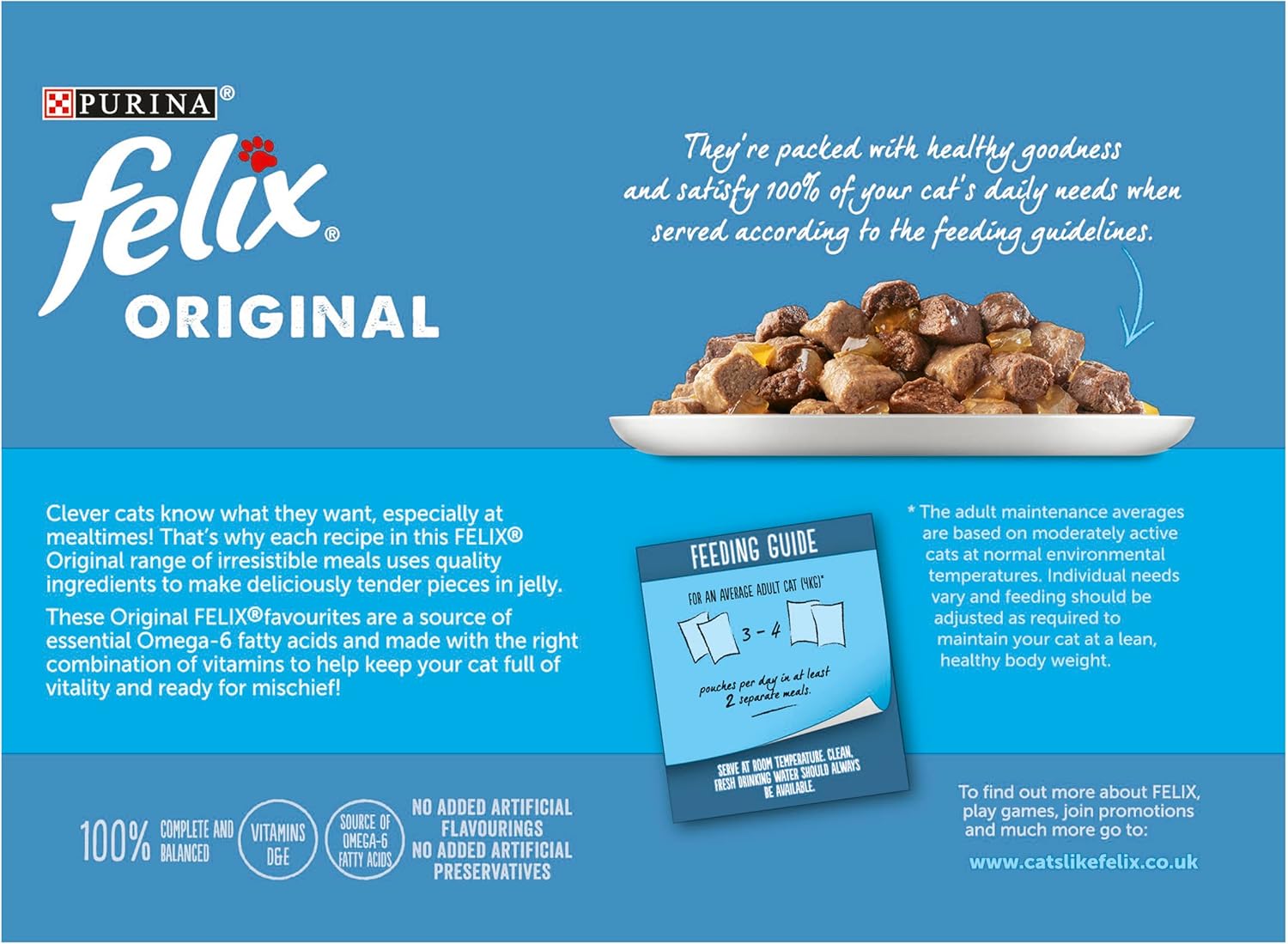 ^ Felix Adult Wet Cat Food Fish in Jelly 12 x 100g Pouches ^ High levels of vitamins D & E to keep your cat supported ^ Source of omega 6 and specially added antioxidants help support natural defences and keep your cat fighting fit! ^ High quality ingredients for the best tasting flavours in all our recipes ^ Individual pouches make mealtimes easier and more convenient ^ 12 x 100g pouches
