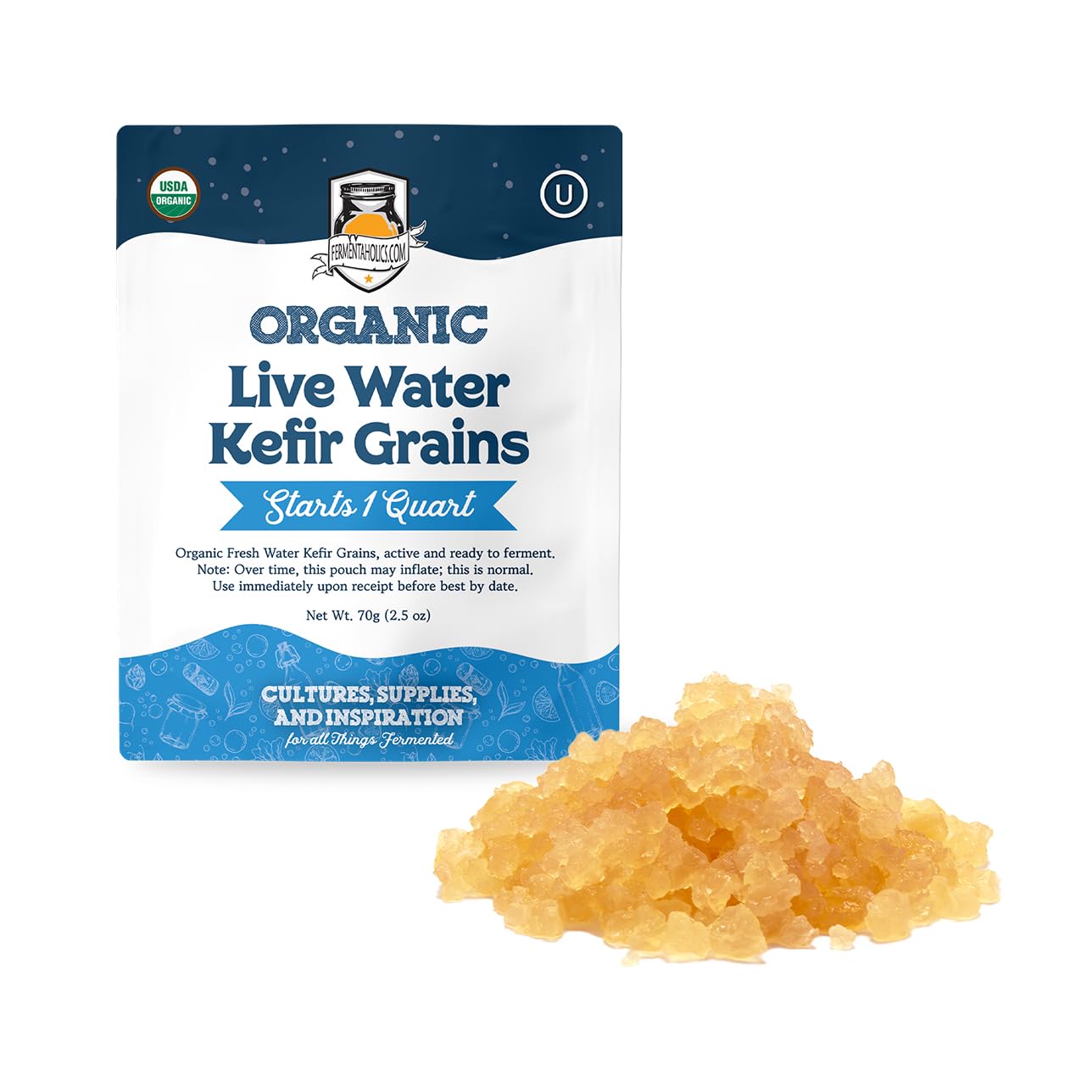 Fermentaholics Organic Water Kefir Grains - Live Starter Culture - Makes A Quart Batch - Water Kefir Starter Grains - Brew Your Own Water Kefir At Home - Bulgaros De Agua