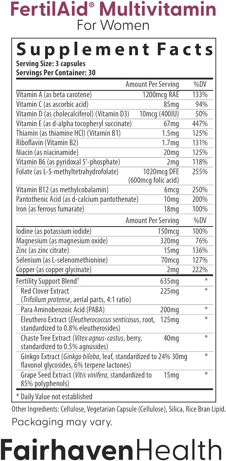 FERTILAID FOR WOMEN COMBINES THE WELL-KNOWN HERBAL INGREDIENTS Vitex, Red Clover and Ginkgo biloba with Iron, MethylFolate (Folic Acid), Iodine, and Other Key Vitamins for Prenatal Wellness