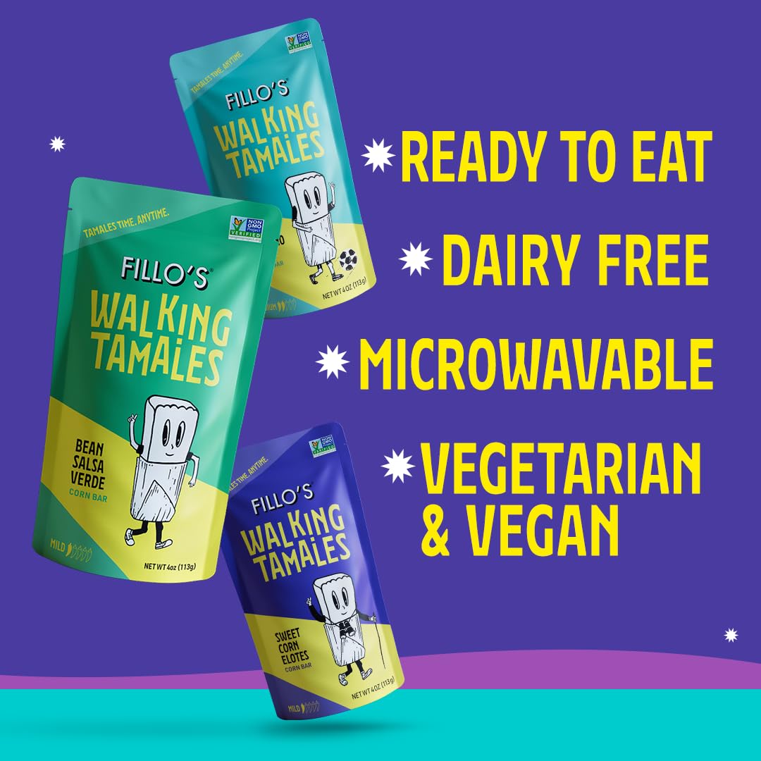 Fillo'S Walking Tamales Corn Poblano Rajas, Pk Of 7, Ready-To-Eat, Delicious, Gluten-Free, Preservative-Free, Vegan Friendly, Microwavable, Non-Gmo
