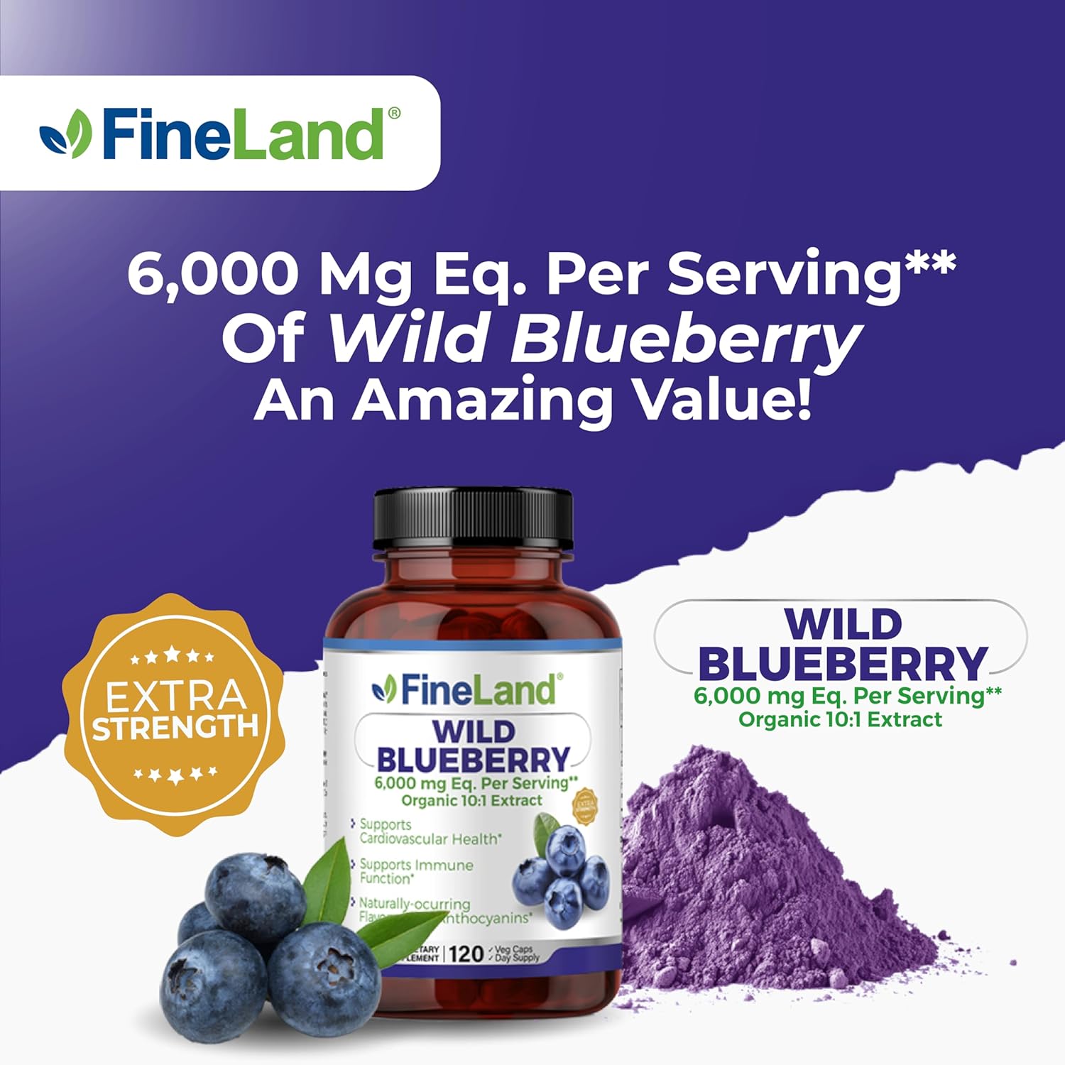 Fineland Wild Blueberry 10:1 Extract, 6,000 Mg Strength, 120 Vegan Capsules, Rich In Flavonoids & Anthocyanins, Antioxidant Support For Brain & Heart Health, 4-Month Supply, Non-Gmo Made In Usa