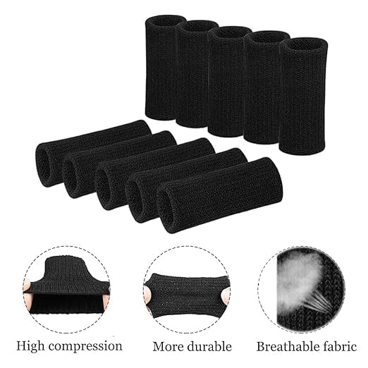 Finger Sleeves, Finger Compression Sleeve Protector Sport Finger Splints for Arthritis, Elastic Thumb sleeves, All Sports Comfortable Cushion Pressure Gym Fitness, Breathable Finger Tape, Trigger Finger(Black)