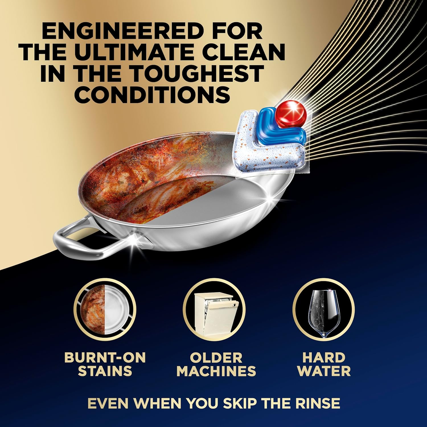 Removes burnt-on stains in toughest conditions; even in old machines and hard water10The only tab with CycleSync technology, which releases the right ingredient at the right time10Ultimate clean, even when you skip the rinse. Save up to 20 gallons of water every time you skip the rinse10Revolutionary performance in recyclable tubs10