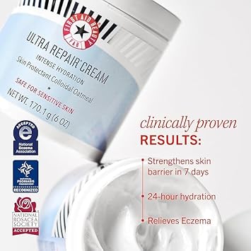 First Aid Beauty - Ultra Repair Cream, Intense Hydration Whipped Colloidal Oatmeal, Clinically Proven To Strengthen Skin Barrier In 7 Days & Helps Relieve Eczema, Luxury Face & Body Moisturizer, 6 Oz