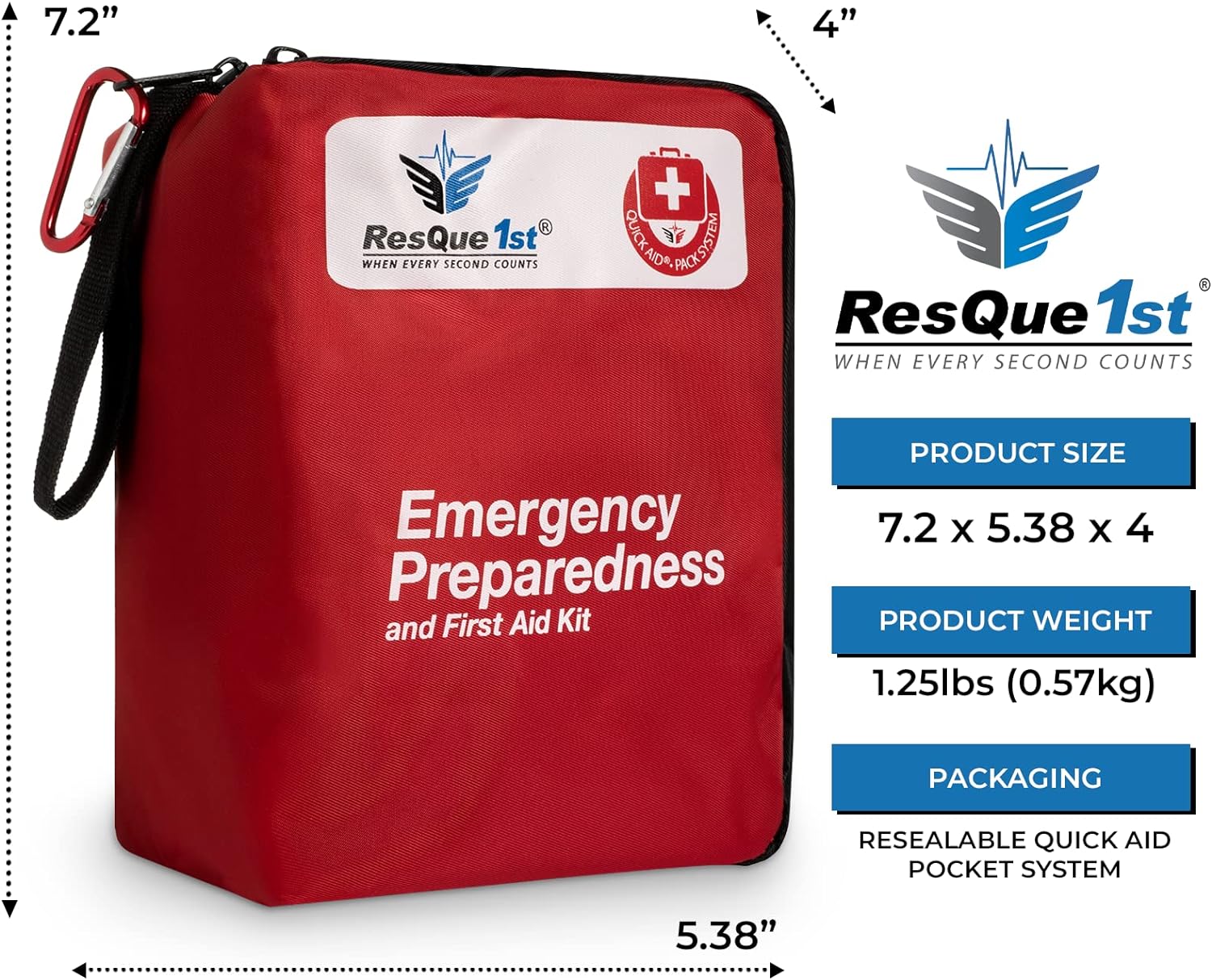 180 PIECES HOSPITAL GRADE MEDICAL SUPPLIES - With 180 pieces of high-quality emergency supplies, this emergency first aid kit is packed with everything you need to respond quickly & effectively during any emergency or disaster. From bandages & gauze to scissors & tweezers, our emergency medical kit provides the best care possible in any emergency situation10MULTI-PURPOSE FIRST AID & EMERGENCY KIT - From hurricanes, earthquakes, tornadoes, & fires, to power outages & auto accidents, this first aid emergency kit has everything you need to treat minor injuries & more serious conditions. From basic first aid items to more advanced medical supplies, this professional first aid kit for medical emergency has got you covered10INNOVATIVE QUICK AID POCKET SYSTEM - This waterproof first aid kit contains 7 resealable quick aid pockets, so you'll have quicker & easier access to all your essential items. Everything is right at your fingertips, organized, & ready to use. This first aid kit survival is also perfect for camping, hiking, boating, or any outdoor adventure10COMPACT, DURABLE, & LIGHTWEIGHT - Weighing only 0.75kg, this first aid kit travel is incredibly easy to carry & store. Whether you're going on a hiking trip, camping in the woods, or simply driving to work, you can conveniently keep this portable first aid kit in your backpack or under your car seat. This small first aid kit is built to last & can withstand even the toughest of conditions10COMPREHENSIVE PROFESSIONAL EMERGENCY KIT- This first aid kit for home includes Poncho, Emergency Blanket, Whistle, Radio/Flashlight, AAA Batteries, Assorted Plastic Bandages, Assorted Fabric Bandages, Antiseptic Towelettes, Triple Antibiotic Ointment, Gauze Pad, Burn Cream, Cold Compress, 2 CPR Breathing Barrier, Tweezers, Thermometer, & many more!