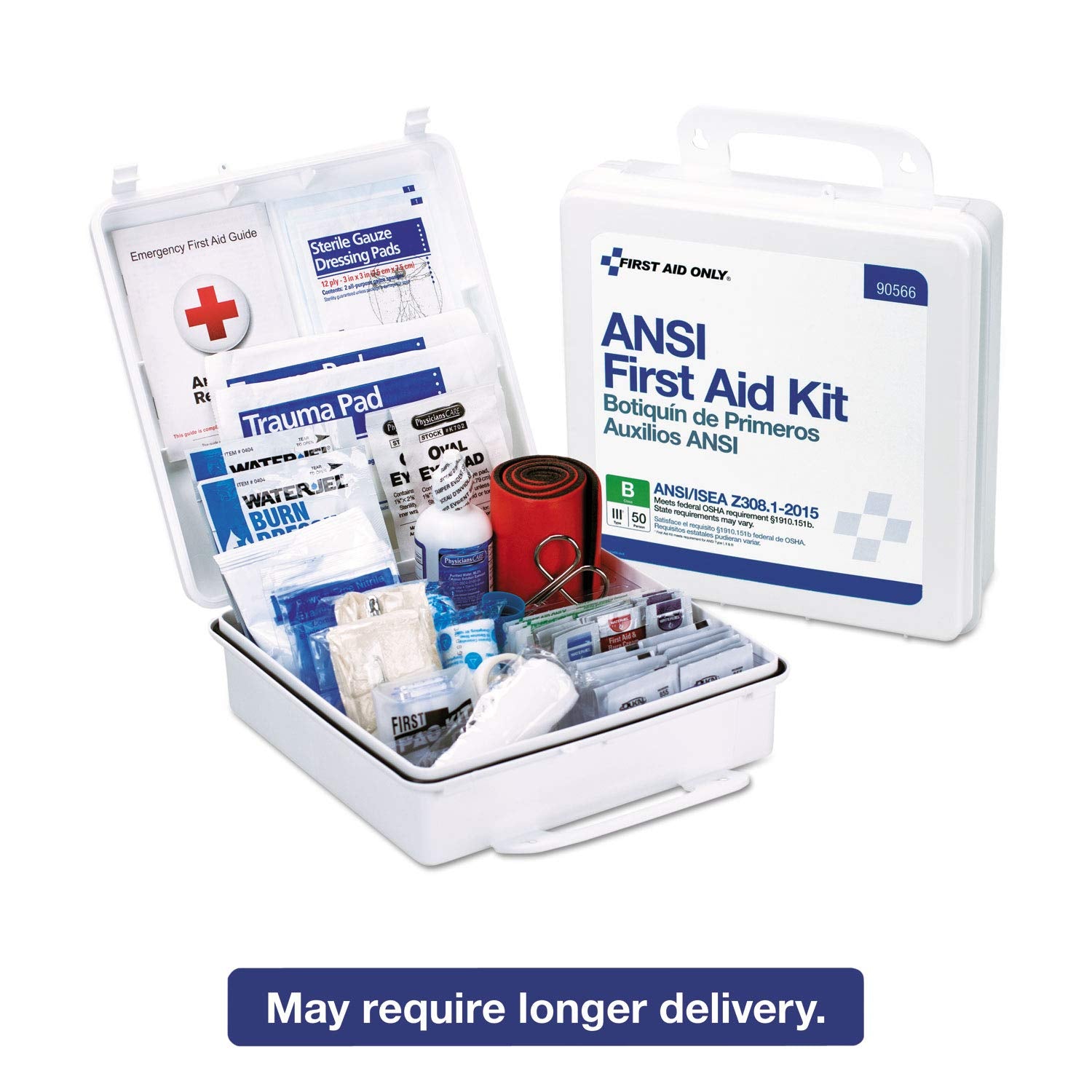 An ideal worksite, office, home, or vehicle first aid kit, this set of essential first aid supplies prepares you to tackle immediate minor injuries. These first aid kits for businesses, jobsites, home, and vehicles are ANSI 2015 B and OSHA compliant. This 199-piece first aid kit for car, office, and home includes supplies for addressing cuts, scrapes, burns, and more with eye wash that offers immediate care for minor ophthalmic emergencies. This office kit is easy to carry while neatly storing your first aid kit supplies. Perfect for work, home, and taking on the go, our first aid kit for car allows you to assist with minor cuts and scrapes just about anywhere. Packaged in a durable weatherproof plastic case with a carrying handle, you'll be able to easily transport emergency supplies in time sensitive situations,ANSI 2015 B and OSHA Compliant Emergency Kit: Includes adhesive plastic bandages, antibiotic ointments, BZK antiseptic towelettes, gauze roll and pads, gloves, scissors, tweezers, other multi-use first aid items, and a 1-ounce eye wash,Convenient Packaging: An ideal worksite or office first aid kit, home first aid kit, or car first aid kit, this set of safety-oriented essentials features a durable wall-mountable weatherproof plastic case with an easy-to-carry handle for transporting first aid supplies,Easy Access: This convenient and versatile office, home, jobsite, and car emergency kit is designed to make accessing first aid kit supplies quick and easy,Versatile: This worksite first aid box helps you stay prepared for potential emergencies when at home, in the office, on jobsites, or while on the go,Personal and Professional First Aid Solutions: First Aid Only offers a full line of first aid kits, cabinets, and stations, Emergency Response Care, individual first aid products, Spill Clean Up kits, CPR care and more