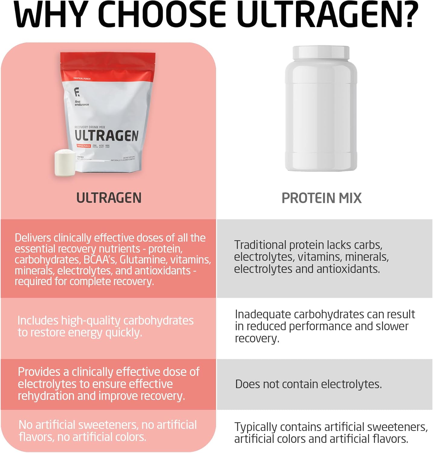 First Endurance Ultragen Workout Recovery Drink Powder, Protein Mix, Boosts Energy, Accelerates Recovery | Tropical Punch, 15 Servings