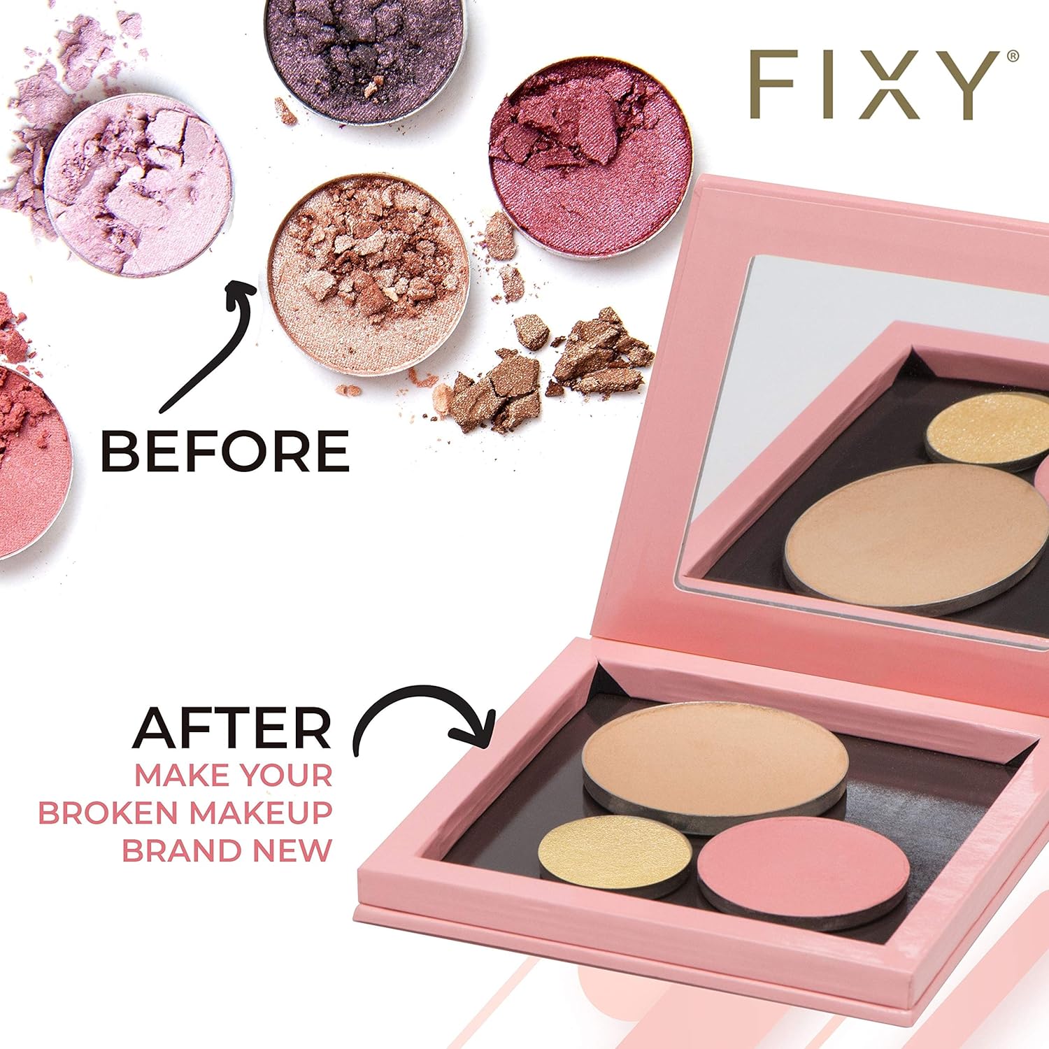 ABOUT THE PRODUCT: 1 > SAVE YOUR MAKEUP, SAVE YOUR MONEY : Cracked your favorite eyeshadow, blush or pressed powder With FIXY this there's no need to replace pricey products 2 > FAST & EASY WITH WAY LESS MESS: 4 steps in 4 minutes is all you need to make your crumbled mess brand new: grind, pour, spray, press and use immediately. That's as easy as it gets 3 > FRAGRANCE-FREE & NO COLOR CHANGE: FIXY keeps your makeup the way it was the special binder evaporates away, leaving just your fixed makeup behind *skip using the binder if you have mineral makeupFIXY Makeup Repair Kit - Fix, Depot or Blend Eyeshadow, Blush & Highlighter