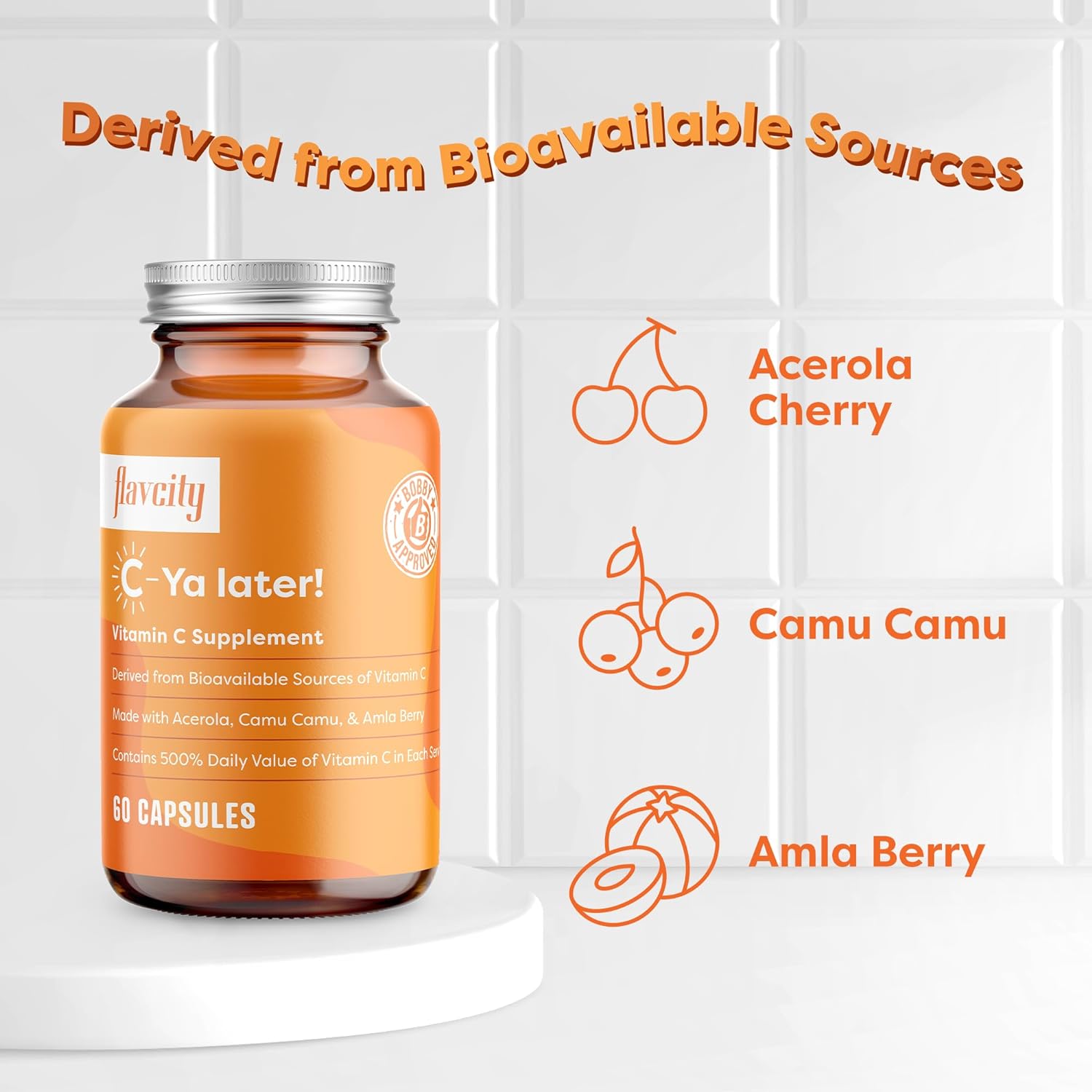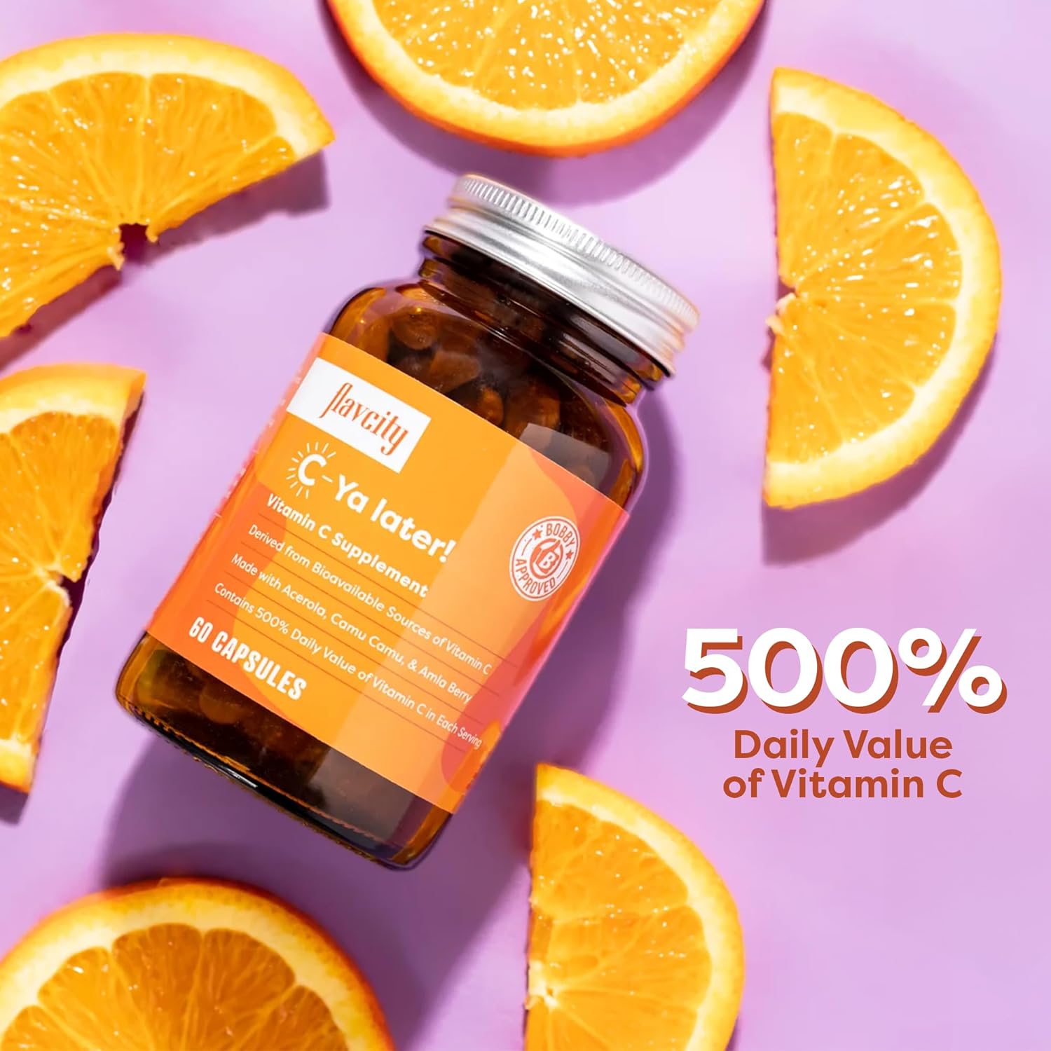 Flavcity Vitamin C Supplement, C-Ya Later- Dietary Supplement For Immune Support Derived From Bioavailable Sources Of Vit C - Made With Acerola, Camu Camu & Amla Berry - 60 Capsules