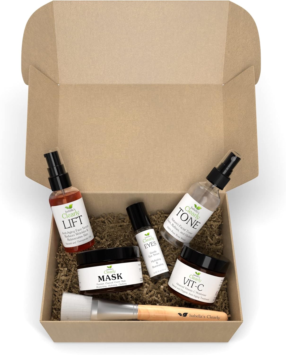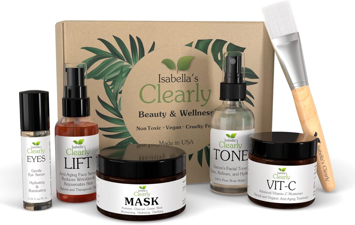 Clearly FLAWLESS Clean Beauty Box contains 6 must-have skin care essentials for vibrant and healthy skin. Start with a toner made from rose petal water (and nothing else!), followed by an anti-aging face and neck serum to hydrate and nourish, then a Vitamin C cream to moisturize and heal, and a powerful eye serum to illuminate the eye area. Once a week, clarify your skin with a charcoal face mask to clean out your pores and keep your skin looking amazing! FLAWLESS has everything you need for a flawless complexion, without toxins, chemicals or preservatives. Our Clearly FLAWLESS skin care box is designed for all skin types, because every skin type needs hydration, moisture, anti-aging nutrients and a deep cleanse to keep the dirt out (and to minimize pores). Whether your skin is acne prone, normal or mature, our FLAWLESS box will make your complexion vibrant, youthful and healthy. The beauty box includes: Clearly TONE, pure rose water toner with no chemicals or preservatives. Simply mist gently on your face to tone, hydrate and refresh your skin for a healthy balanced complexion. Clearly LIFT, anti-aging face and neck serum with powerful antioxidants and essential oils that provide intense moisture and hydration and nourish the skin to keep it healthy and firm. Clearly VIT-C, a powerful Vitamin C cream made with organic ingredients to nourish and brighten the skin for a radiant complexion. Clearly EYES, anti-aging eye serum helps to hydrate and illuminate the eye area, and keep the fine lines away. Clearly MASK, clarifying and deep pore cleansing charcoal cream face mask keeps away dirt and deeply hydrates for smooth soft skin, Clean beauty box contains 6 must-have skin care essentials for vibrant and healthy skin, Made with natural and organic ingredients. No harsh chemicals or toxins. Plant based, vegan and cruelty free, Each product is handcrafted in small batches in Orange County, CA. We are a small family owned and operated company with a mission to clean up the beauty scene with natural non-toxic products!, Designed for all skin types, because every skin type needs hydration, moisture, anti-aging nutrients and a deep cleanse to keep the dirt out (and to minimize pores), Beautifully wrapped in an eco signature box to make the perfect ready-to-go gift for any woman in your life (wife, friend, mom, daughter, cousin, niece, aunt, sister, co worker, or yourself!)