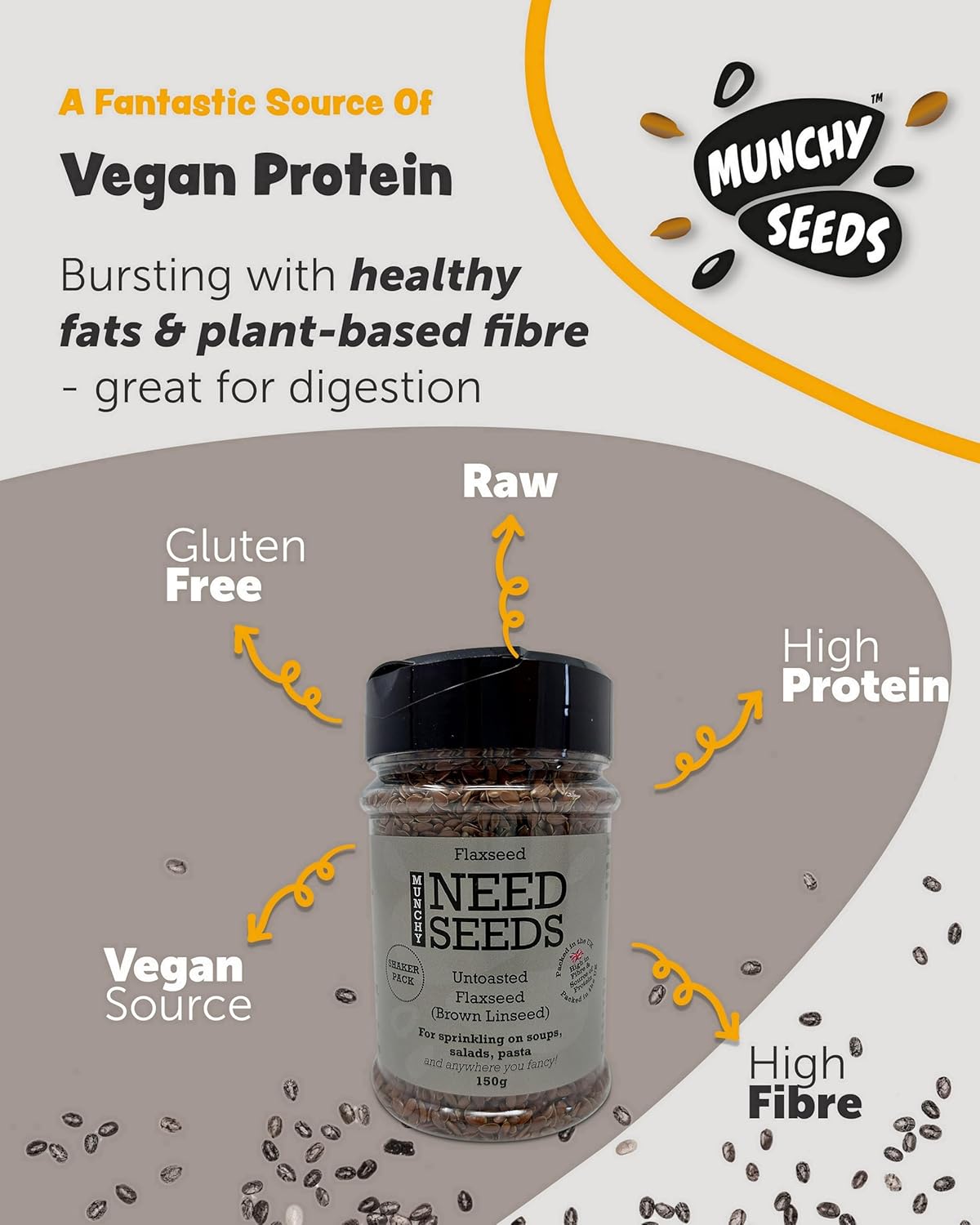 Flax Seeds 150G Shaker – High In Omega-3 & Fiber – Supports Digestion & Heart Health – Vegan & Gluten-Free – Easy To Sprinkle On Smoothies, Oatmeal & Salads – Munchy Seeds, Need Seeds