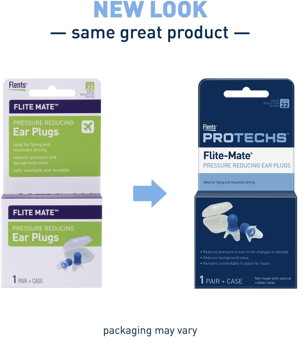 Flents Flite Mate Pressure-Reducing Earplugs are the perfect companion for frequent flyers, travelers, and anyone seeking relief from unwanted noise. Designed with innovative pressure-reducing technology, these earplugs minimize discomfort during air pressure changes, ensuring a smooth and enjoyable journey. Crafted from soft, reusable silicone, Flents Flite Mate earplugs provide a snug and comfortable fit, even during extended wear. With a Noise Reduction Rating (NRR) of 22, they effectively reduce ambient noise, making them ideal for flying, sleeping, studying, or working in noisy environments. For added convenience, each pair comes with a compact storage case, keeping your earplugs clean and easy to carry wherever you go. Durable and designed for repeated use, these earplugs offer a sustainable solution to your noise and pressure concerns. Choose Flents Flite Mate earplugs for dependable comfort and protection, whether you're soaring through the skies, blocking out snoring, or simply seeking a moment of peace,PRESSURE-REDUCING DESIGN: Flents Flite Mate earplugs minimize discomfort caused by air pressure changes during flights, providing a smooth and stress-free travel experience,VERSATILE NOISE PROTECTION: With an NRR (Noise Reduction Rating) of 22, these earplugs effectively reduce unwanted noise, making them perfect for flying, snoring, studying, or general noise cancellation,COMFORTABLE SILICONE MATERIAL: Crafted from soft, reusable silicone, these earplugs ensure a secure and comfortable fit for extended use without causing irritation,PORTABLE AND CONVENIENT: Includes a compact storage case, making it easy to keep your earplugs clean and accessible while traveling or on the go,DURABLE AND REUSABLE: Designed for repeated use, these high-quality earplugs are a sustainable solution for consistent noise and pressure protection