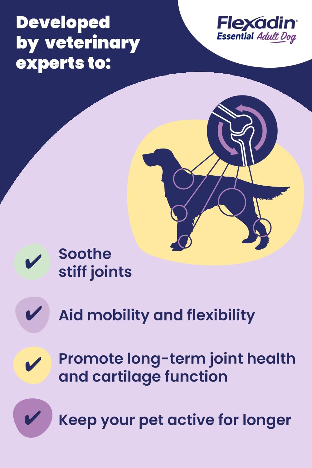 Flexadin Adult Dog Joint Supplement Containing Uc-Ii | Designed To Aid Mobility & Flexibility | Natural Ingredients Omega 3 & Vit E | Aged 2+ | 120 Chews