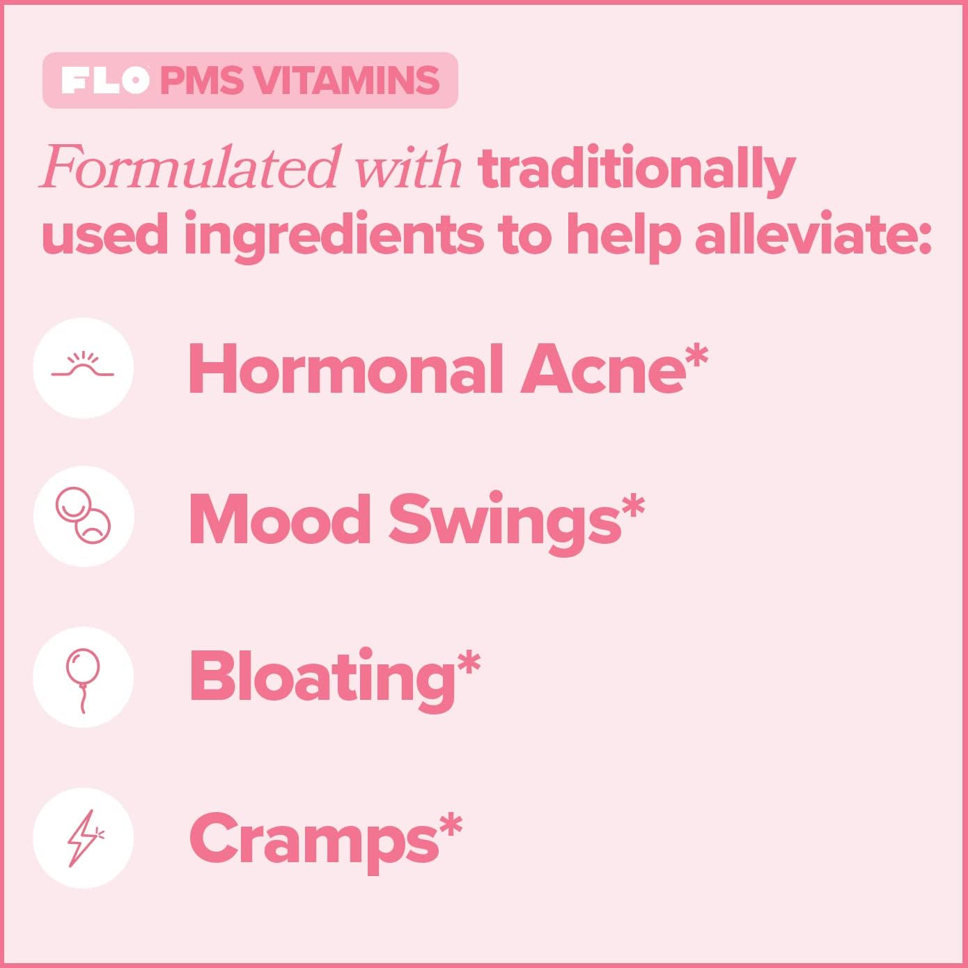 Flo Pms Vitamins For Women, 30 Servings (Pack Of 2) - Proactive Pms Relief - Targets Hormonal Breakouts, Bloating, Cramps, & Mood Swings With Chasteberry, Vitamin B6, & Lemon Balm