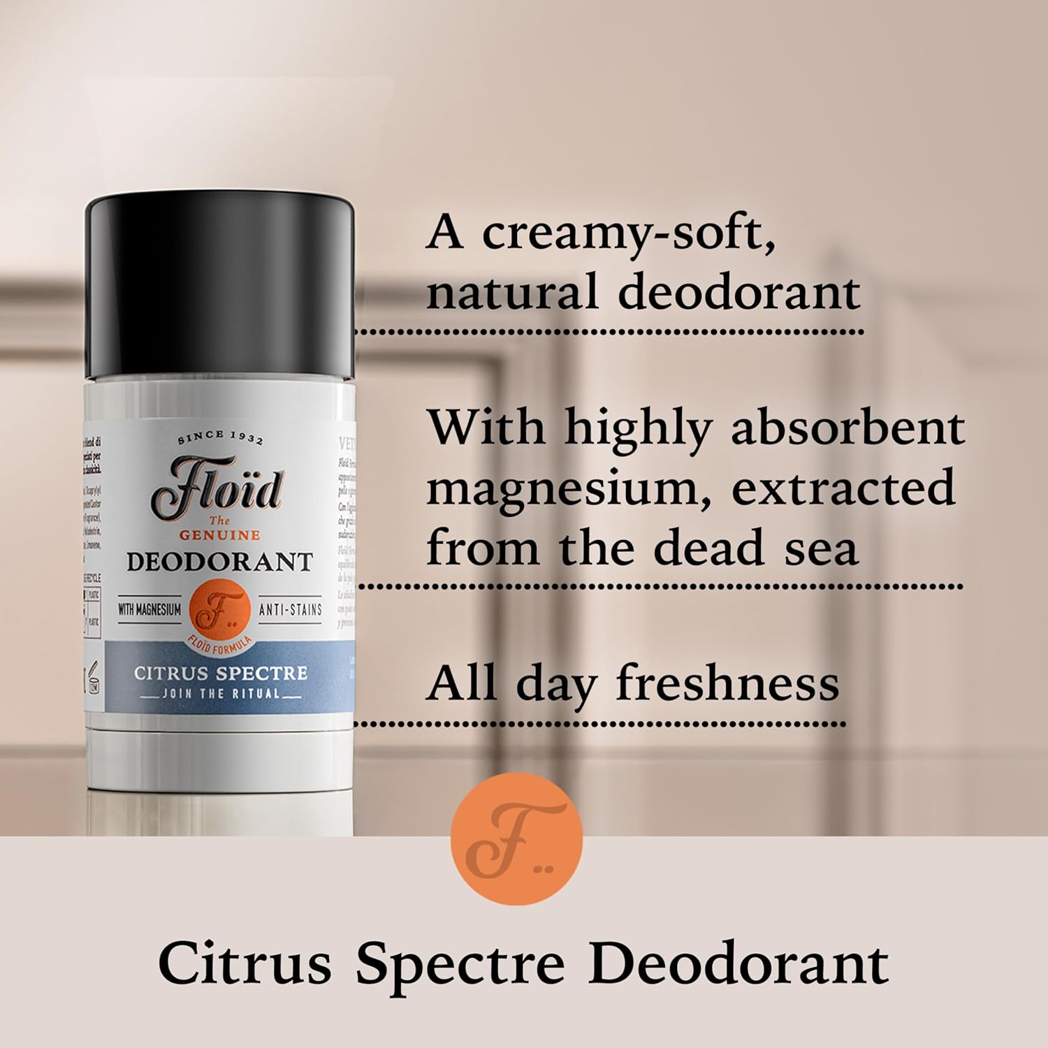 Floid Citrus Spectre Deodorant (75Ml), Deodorant For Men With Magnesium Salts For High Absorbency And Lasting Freshness, Body Skin Care With Anti-Stain Formula