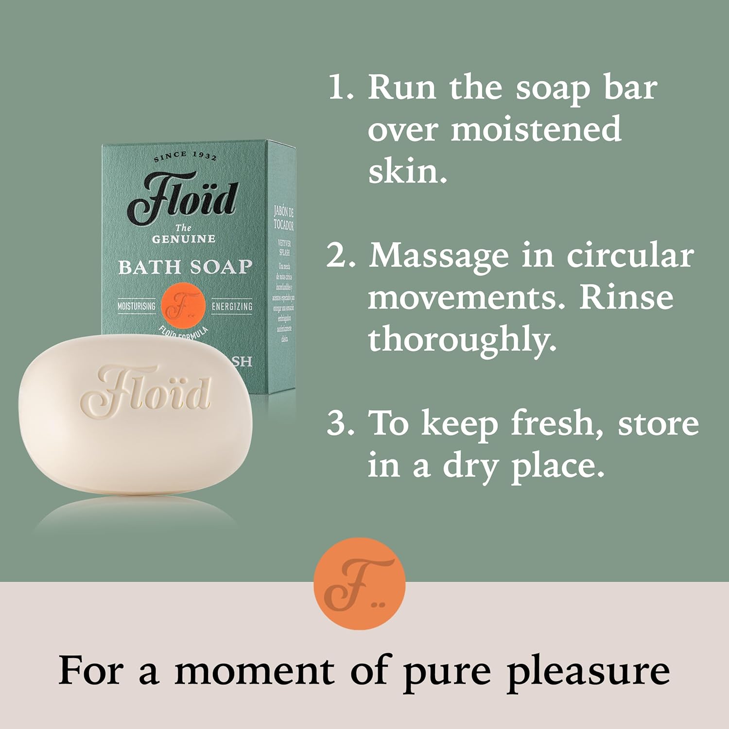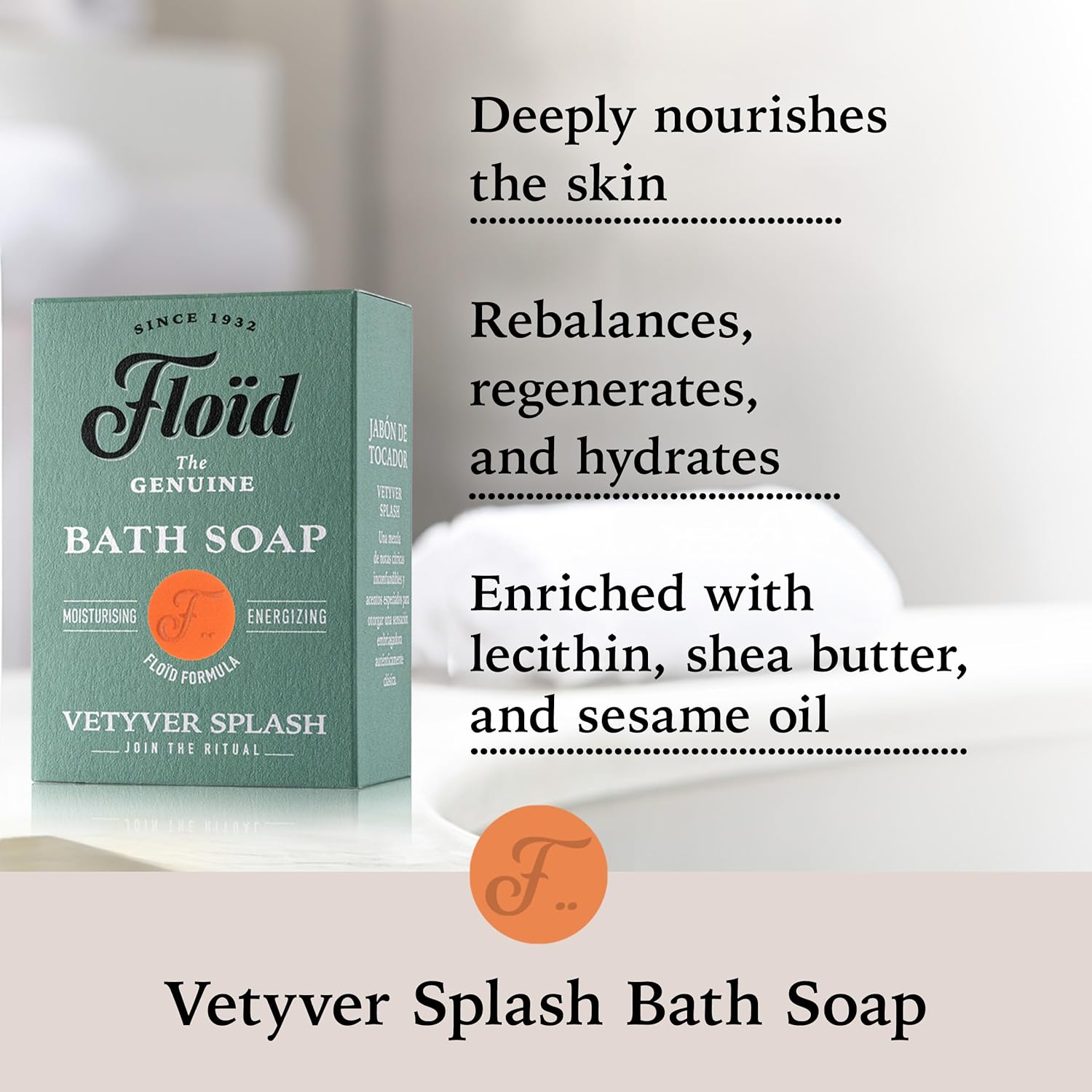 Floid Vetyver Splash Bath Soap, 100% Vegetable Bath Soap Bar Enriched With Nourishing Lecithin, Shea Butter, And Sesame Oil To Protect Skin, Leaving It Soft And Supple