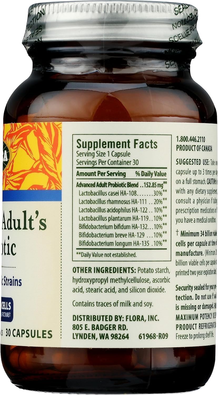 Flora - Advanced Adult'S Blend Probiotic, Seven Senior-Specific Strains, Gluten Free, Raw Probiotic With 34 Billion Cells, 30 Capsules