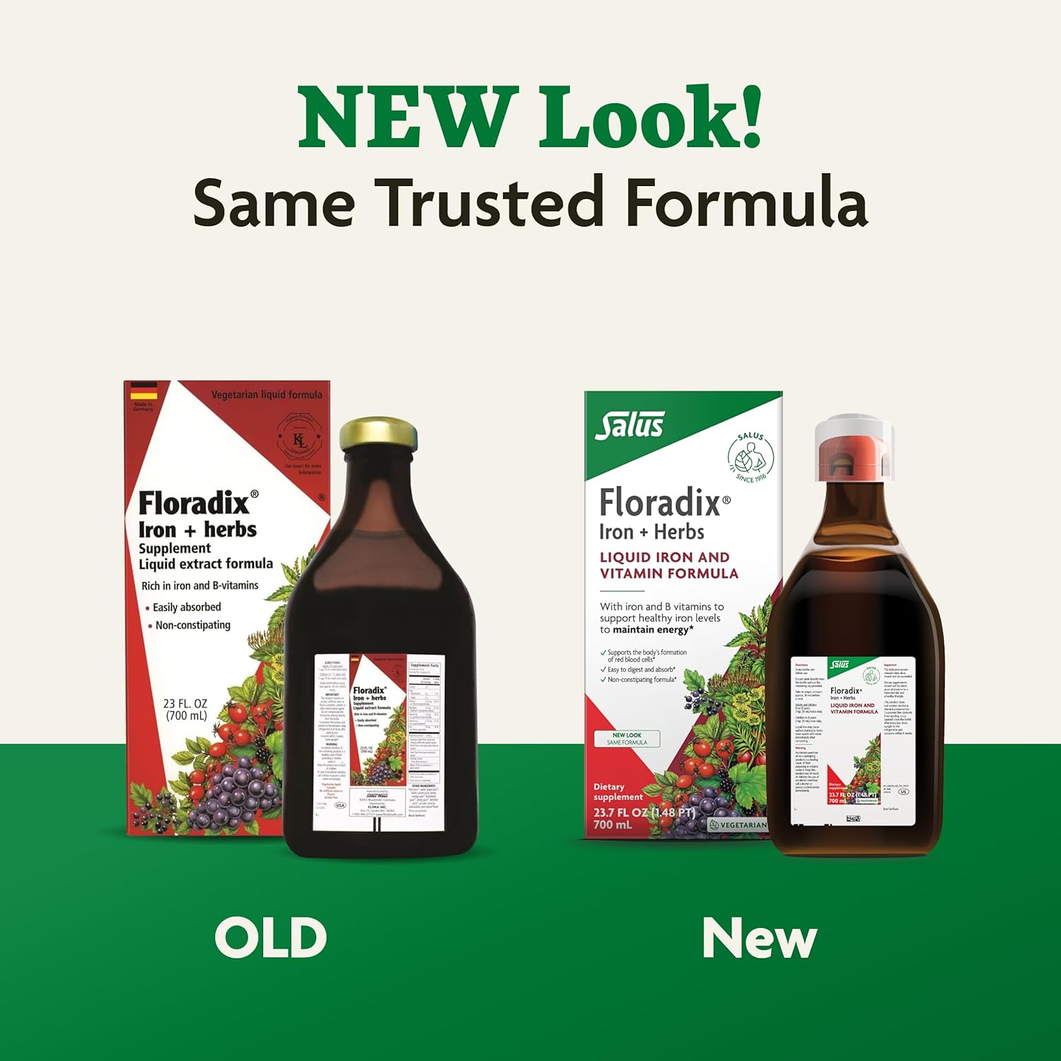 Floradix By Salus Iron & Herbs - Liquid Herbal Supplement For Energy Support - Iron Supplement With Vitamin C & B Complex Vitamins - Liquid Iron Supplement For Men & Women - 23 Oz