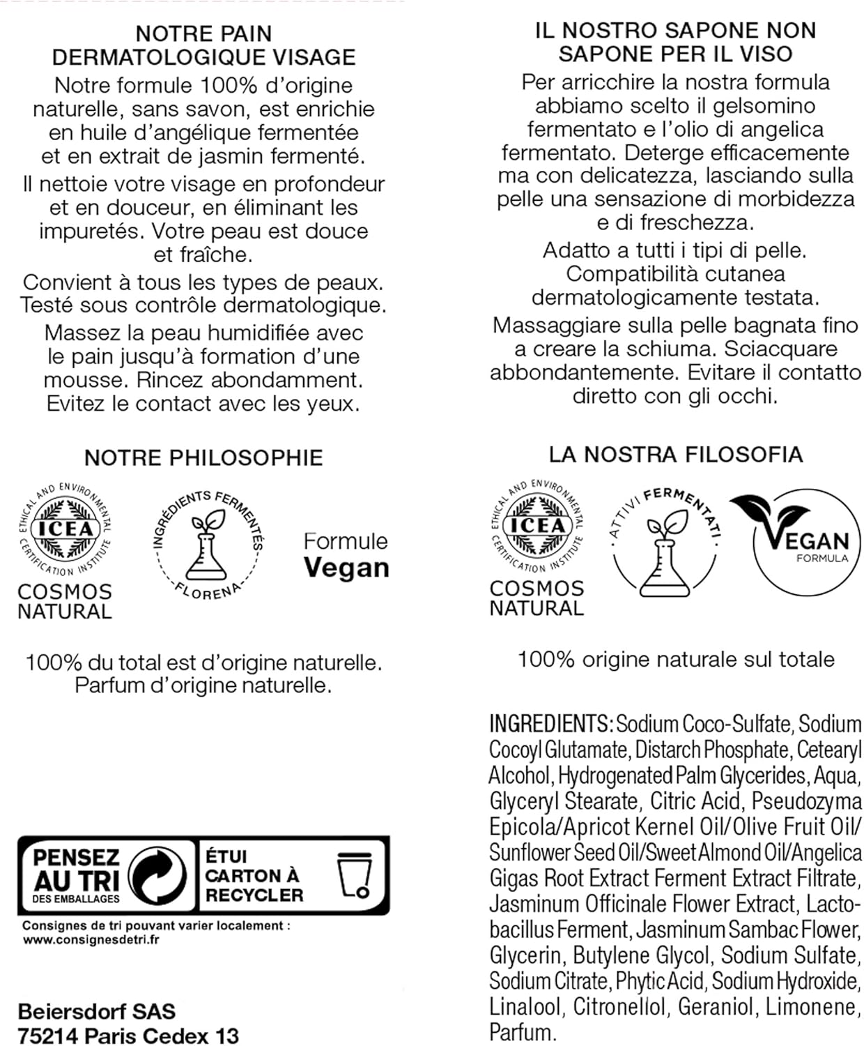 Florena Dermatological Face Bread With Angelic Oil And Fermented Jasmine (1 X 90G), Soap-Free Face Wash 100% Natural Ingredients, Anti-Impurity Face Care
