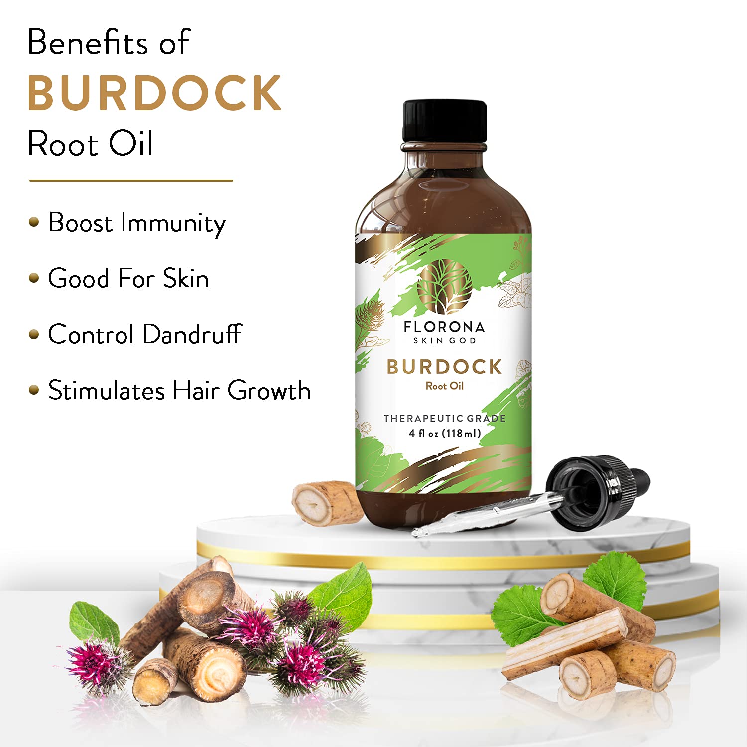 Florona Burdock Root Oil 100% Pure & Natural - 4 Fl Oz, For Hair, Face & Skin Care