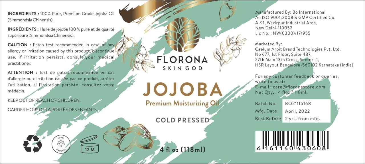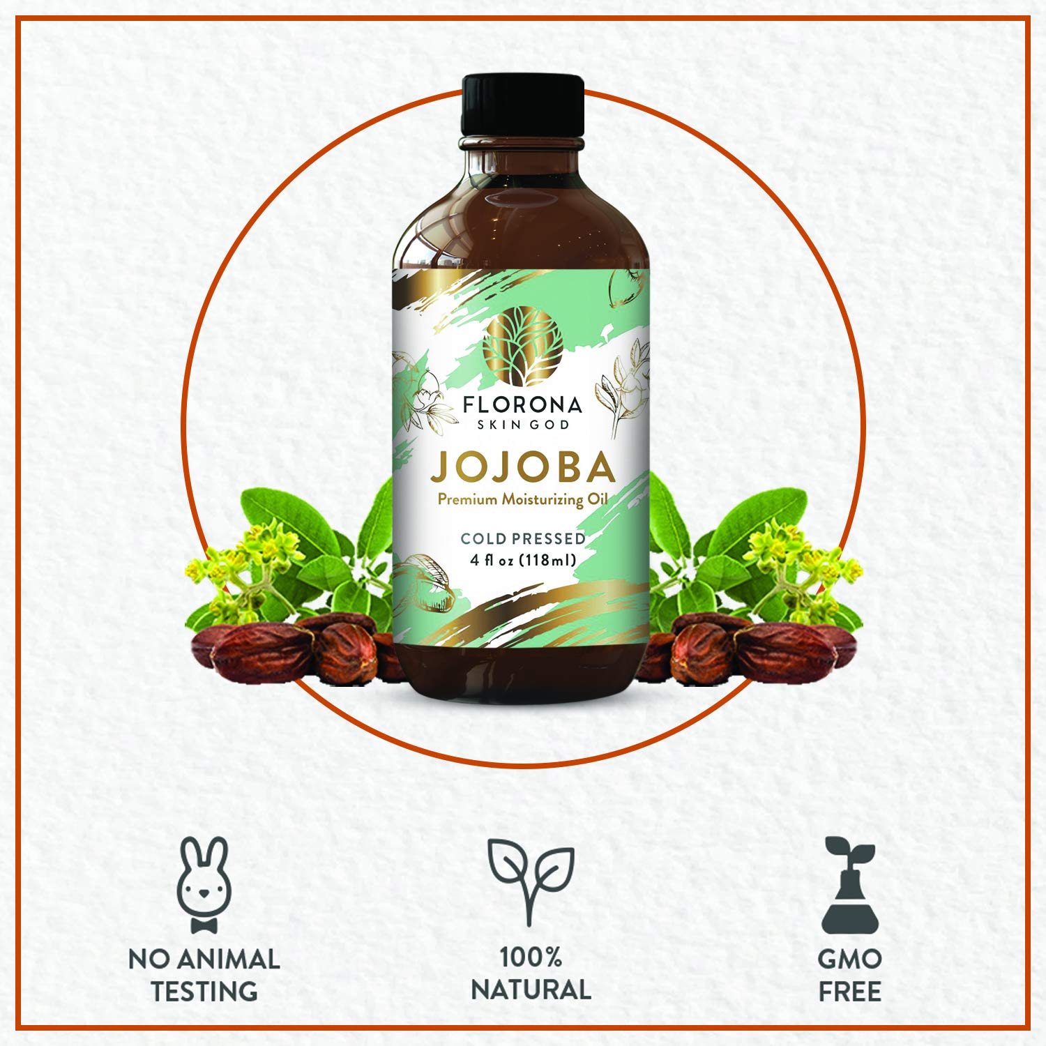 Florona Jojoba Oil 100% Pure & Natural - 4 Fl Oz, For Hair, Face & Skin Care, Massage