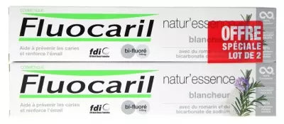 Fluocaril Natur'Essence Whiteness Toothpaste Bi-Fluorinated 2 X 75Ml Is A Toothpaste Based On Rosemary And Sodium Bicarbonate That Helps To Restore Natural Teeth Whiteness. Its Formula Integrates The Fluocaril Bi-Fluorinated Signature Technology For Decays Protection. 96% Of Ingredients Are Of Natural Origin. Contains Sodium Fluoride (1200 Ppm F) And Sodium Monofluorophospate (250Ppm F). Fresh Rosemary Taste