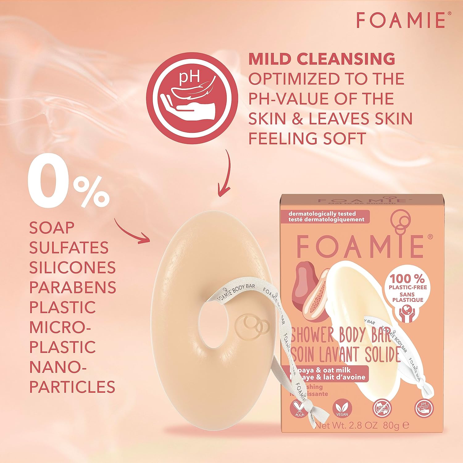 Foamie 2-In-1 Natural Body Bar Soap-Free, Body Wash Women & Men For Smooth Skin, Oatmeal Vegan Body Wash Refreshing, Body Wash For Dry Skin With Papaya & Oat Milk, Sulfate Free Body Wash