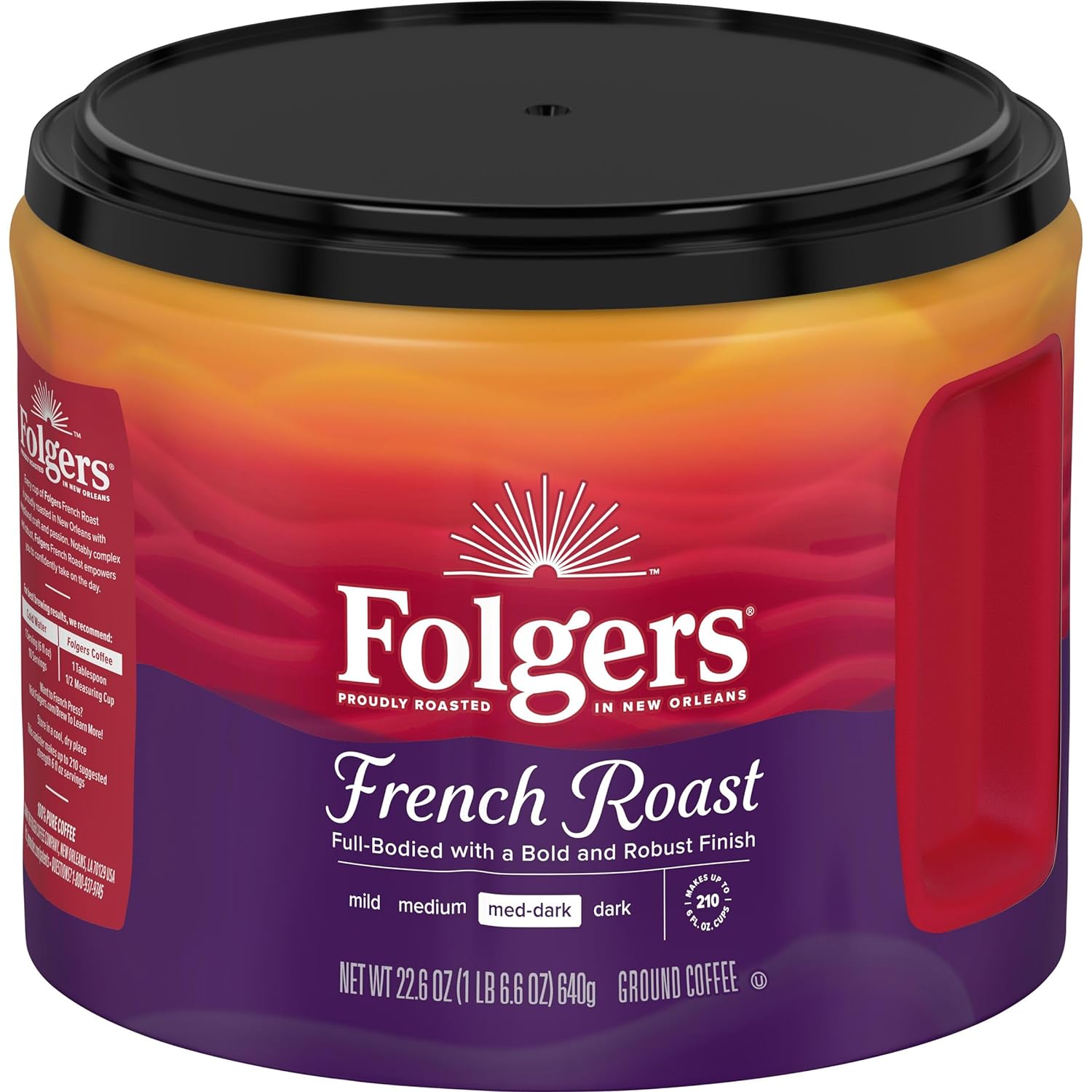 Folgers French Roast Medium-Dark Roast Ground Coffee, 22.6 Ounce Canister