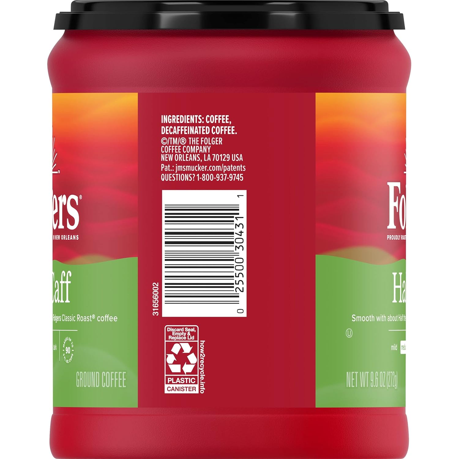 Contains One (1) 9.6-Ounce Canister Of Folgers Half Caff Ground Coffee