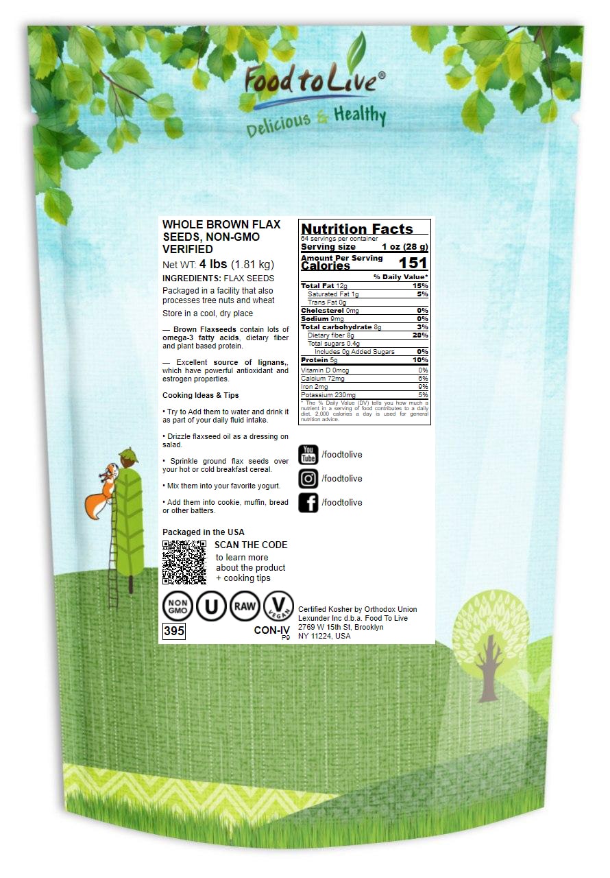 Cultivated for over a thousand years, flax seeds are one of the most nutritious foods known to man. You can add them to a variety of dishes, making your every meal healthier and tastier. Food to Live Flax Seeds are of premium quality and available all year round, so you’ll never run out of this amazing food. Due to their high fiber content and nutritional value, flax seeds are great for digestion and can enhance any weight loss program. Nutritional Value Food to Live Flax Seeds provide you with a wide range of nutrients, including B vitamins (especially thiamin), magnesium, manganese, and zinc. They have an extremely high content of vitamin E (a potent antioxidant) and copper (element necessary for producing a variety of enzymes). They also make one of the best plant-based sources of omega 3 fatty acids, which are vital for maintaining your overall health. Directions Flax seeds have a ‘soft’ nutty flavor that can complement a great number of dishes. They can be added to salads, baked goods, and will go well as toppings in desserts and yogurts. A fabulous addition to any shake and smoothie. This product is processed in a facility that also processes tree nuts and wheat. Flax Seeds are rich in essential omega 3 fatty acids, making them one of the healthiest foods. Use flax seeds to make your smoothies more nutritious and give you a nutritional boost. Food to Live Flax Seeds can be added to a great variety of dishes and included in any diet. Top-quality Flax Seeds from Food to Live are free from additives
