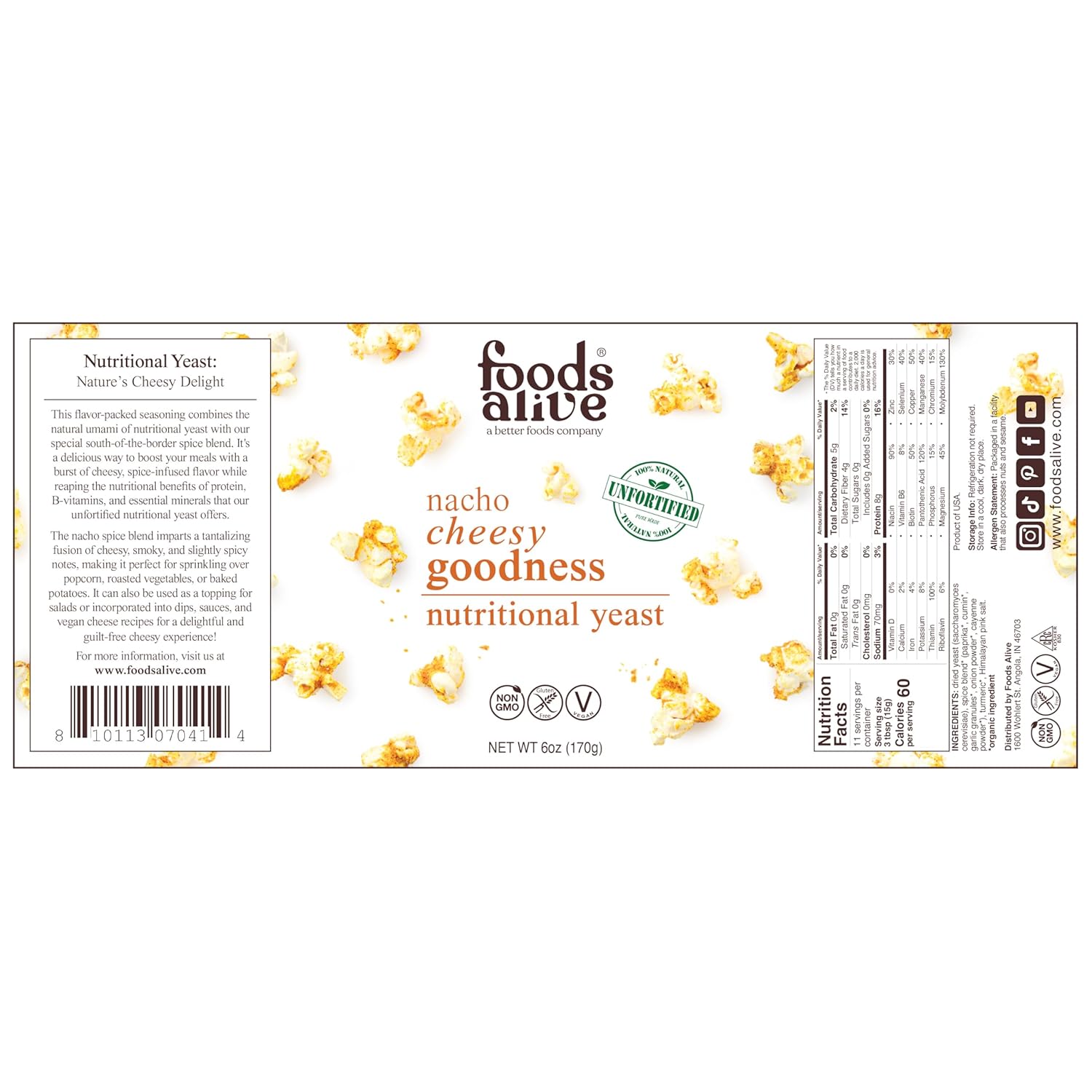 Foods Alive Nacho Cheesy Goodness Nutritional Yeast, 6Oz Shaker Jar/Non-Fortified, Vegan Cheese Powder Seasoning