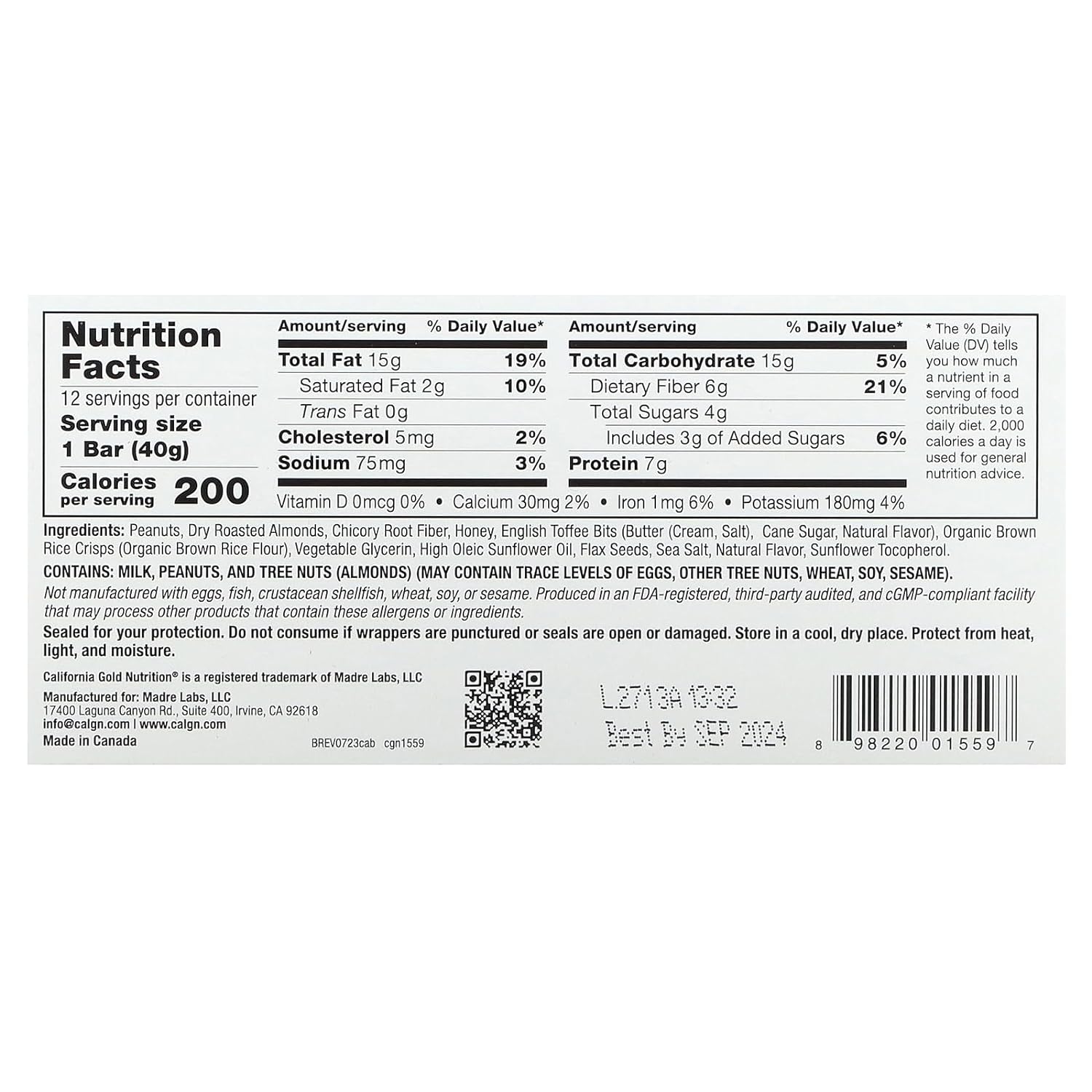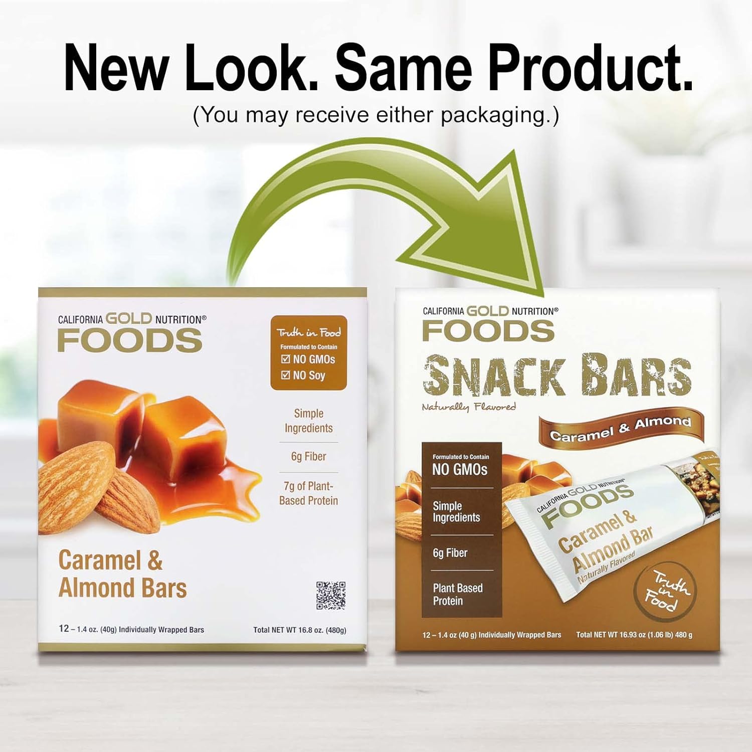 DESCRIPTION : FOODS - Caramel Almond Bars, 12 Bars, 1.4 oz (40 g) Each, California Gold Nutrition