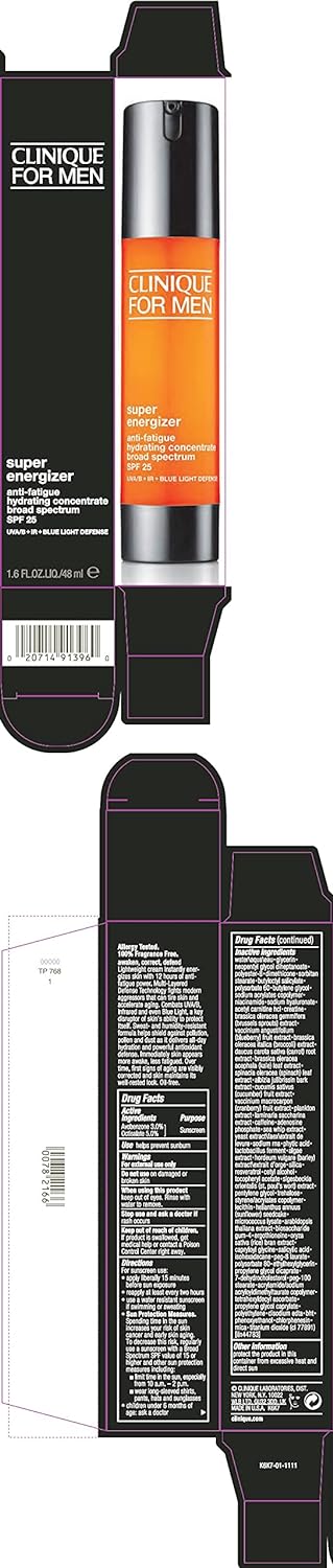 For Men Super Energizer Anti-Fatigue Hydrating Concentrate SPF25 1.7oz (Full Sized Retail Product) HOW TO USE: Apply 1-2 pumps AM to clean face and neckLightweight, non-sticky cream moisturizer that energizes skin with 12 hours of hydration and anti-fatigue power