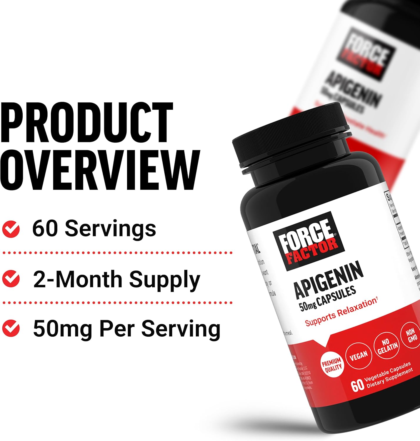 Once-Per-Day Formula: Too Many Apigenin Sleep Supplements Require Multiple Capsules Per Day. Force Factor Apigenin Packs A Powerful 50Mg Into Every Capsule, Making It A Powerful And Convenient Once-Per-Day Formula You Can Trust