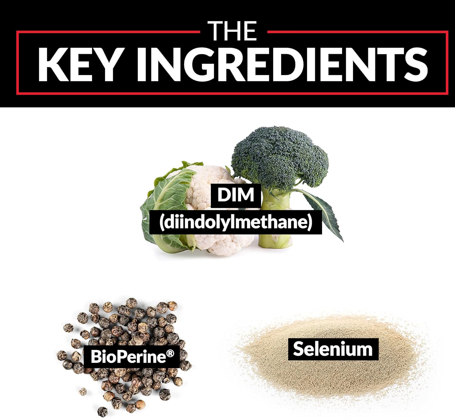 DECREASE ESTROGEN: DIM, short for dinndolymethane, is a unique compound believed to help decrease estrogen levels in men. At concentrated amounts, DIM is thought to work by inhibiting the enzyme responsible for converting testosterone into estrogen10OPTIMAL DAILY DOSE: Force Factor fundamentals DIM contains 300mg of premium DIM, helping to ensure you get a powerful dose time after time10SUPERIOR ABSORPTION: BioPerine is added to help enhance the bioavailability and performance of selenium in the formula, promoting quick absorption so key natural ingredients can get to work quickly10FUNDAMENTAL STACKING: Force Factor fundamentals have been purposefully designed to stack well with other Force Factor supplements to help tackle your individual goals10MADE IN USA: Force Factor performance nutrition supplements are produced in cGMP facilities right here in the USA and formulated with premium ingredients sourced from all over the world that are regularly tested for quality and potency10Dim, or diindolylmethane, is a unique compound found in small amounts in cruciferous vegetables like broccoli, kale, and cauliflower. What makes it special is its widespread traditional use to decrease estrogen levels in men. At concentrated amounts, DIM is thought to work by inhibiting the enzyme responsible for converting testosterone into estrogen in the body. With 300mg of high quality DIM in every capsule, along with bioperine Black Pepper Fruit Extract and selenium, you can rest assured that you are getting a powerful dose and quick absorption for optimal performance. Every Fundamentals formula was purposefully designed to pair with the full line of premium Force Factor supplements, helping you tackle your goals and fully unleash your Potential