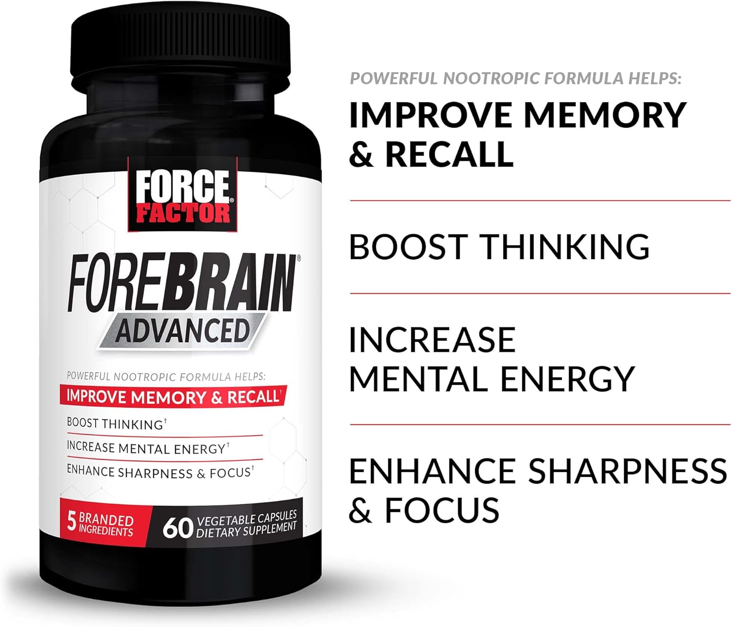 Force Factor Forebrain Advanced, 3-Pack, Brain Booster, Brain Supplement For Memory Support, Concentration, Focus, Thinking, And Mental Energy, Powerful Ingredients That Work Fast, 180 Capsules