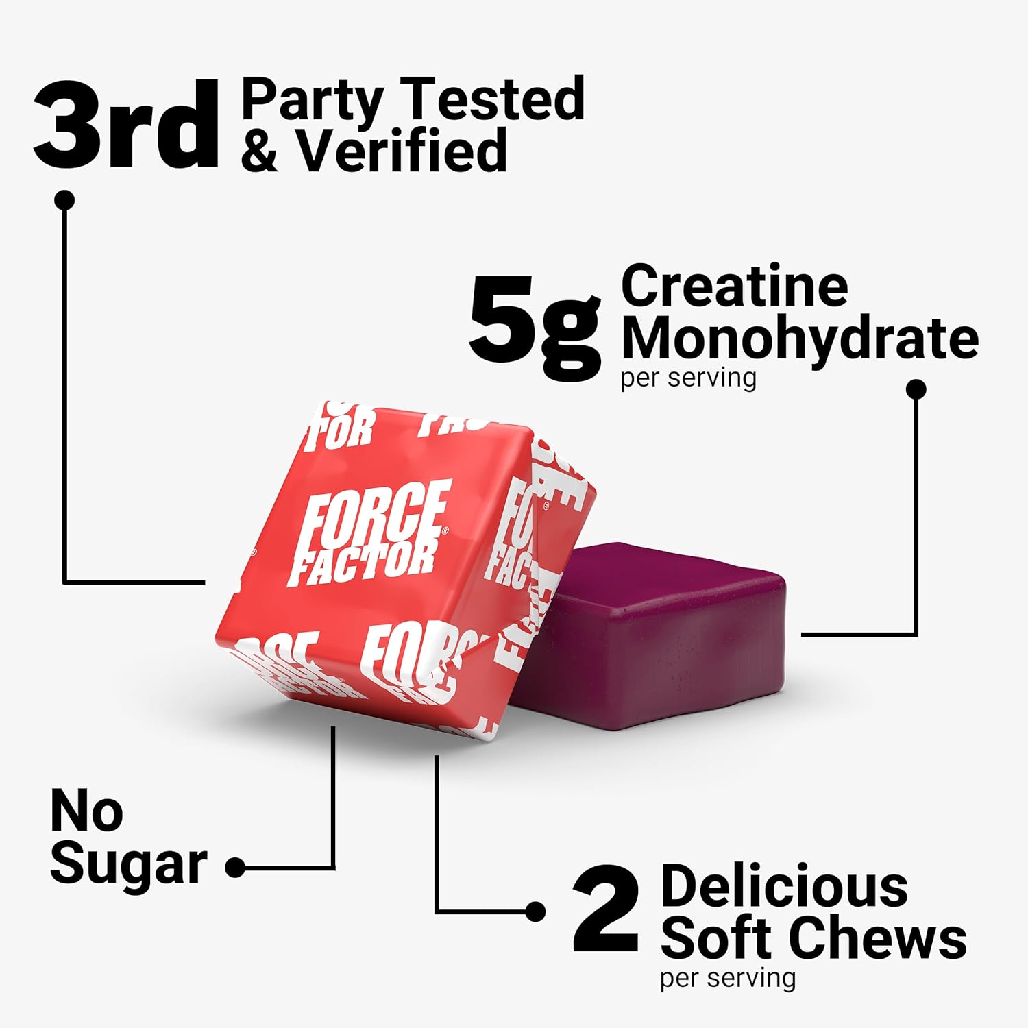 THIRD-PARTY TESTED & VERIFIED 5g: Force Factor Legendary Creatine Soft Chews are third-party tested and scientifically verified to contain 5g creatine monohydrate per servingāunlike some other brands that quietly underdose their creatine chews