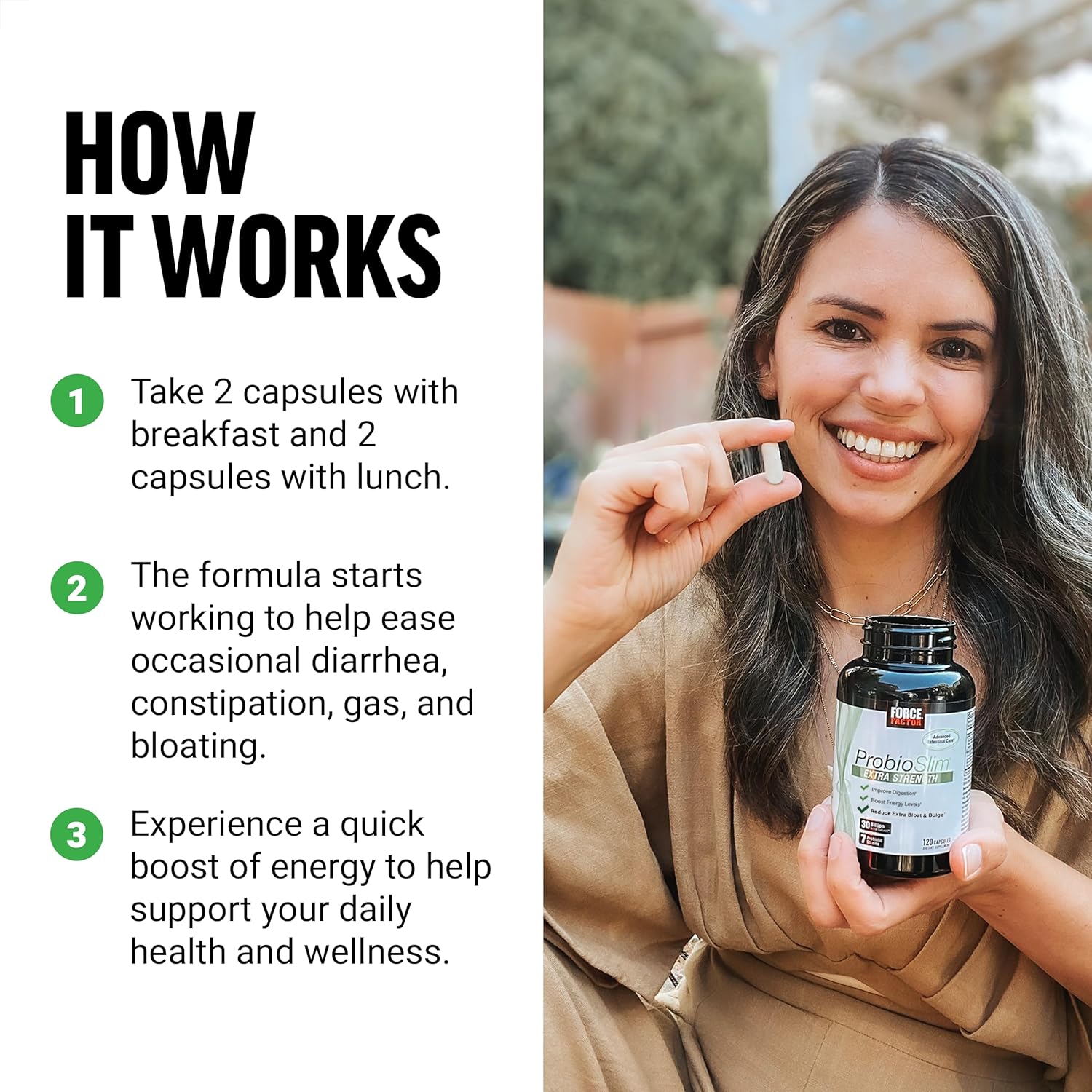 Force Factor Probioslim Extra Strength, Probiotic Supplement For Women And Men With 30 Billion Cfus And Green Tea Extract For Gut Health Support, Bloating And Gas Relief, 120 Count (Pack Of 2)