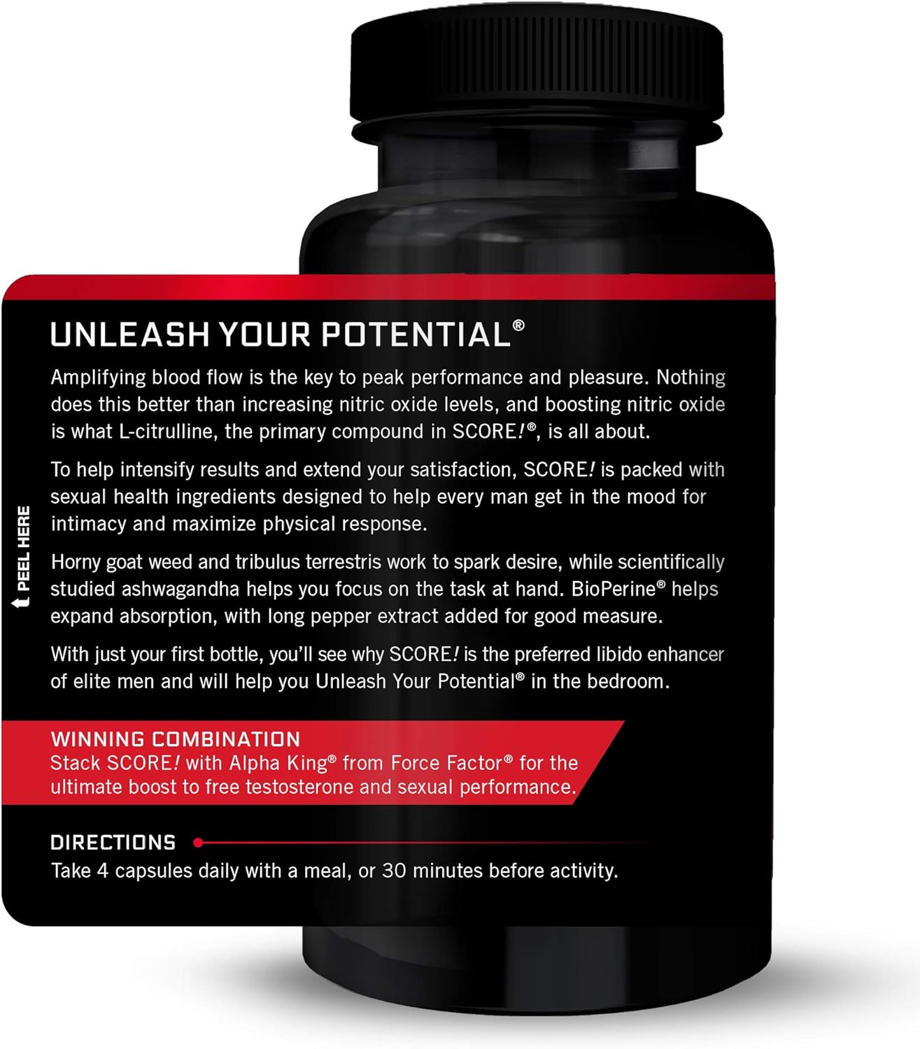 Unleash Your Potential The Lack Of Safe, Effective Performance-Enhancing Supplements Is A Big Problem, But The Reason For The Scarcity Is Simple: ItâS Hard To Engineer A Formula That Starts To Work Quickly, Time After Time. Score! Is Packed With MenâS Vitality Ingredients Designed To Help Every Man Enhance Performance In The Bedroom. Some Male Vitality Products Take A Long Time To Start Working. Not Score! You Can Count On Consistent Results To Help Ensure You Perform At Your Peak. With Just Your First Bottle, YouâLl See Why Score! Is The Preferred Performance Enhancer Of Elite Men And Will Help You Unleash Your Potential. The Latest Science For Peak Performance Score! Is Designed To Deliver A Game-Changing Experience With Fast-Acting Ingredients For Consistent Results. Experience A Substantiated Dose Of L-Citrulline, Which Provides Your Body With A Powerful Nitric Oxide Boost To Enhance Blood Flow Where You Need It Most, Along With L-Theanine And Ashwagandha To Help You Stay Focused, And Popular Vitality Ingredients Traditionally Used To Improve Endurance And Stamina. This Comprehensive Formula Also Contains Bioperine To Help Expand The Bioavailability And Absorption Of Several Other Ingredients, Plus Long Pepper Extract For Good Measure. Score! Includes Synergistic Men'S Health Ingredients Designed To Help You Get In The Mood For Intimacy And Maximize Your Physical Response. A Substantiated Dose Of L-Citrulline Provides Your Body With A Powerful Nitric Oxide Boost To Enhance Blood Flow To Your Extremities, Amplifying Performance And Pleasure. But Score! Contains So Much More To Help Intensify Results And Extend Your Satisfaction. ItâS Loaded With Premium Male Vitality Ingredients Like Horny Goat Weed, Tribulus Terrestris, And Black Maca To Spark Desire, With Scientifically Studied Compounds Like L-Theanine And Ashwagandha Help You Focus On The Task At Hand. Some Male Vitality Products Take A Long Time To Start Working, But Not Score!. You Can Count On Consistent Results To Help Ensure You Never Miss Your Chance. With Just Your First Dose, YouâLl See Why Score! Is The Preferred Libido Enhancer Of Elite Men And Will Help You Unleash Your Potential In The Bedroom