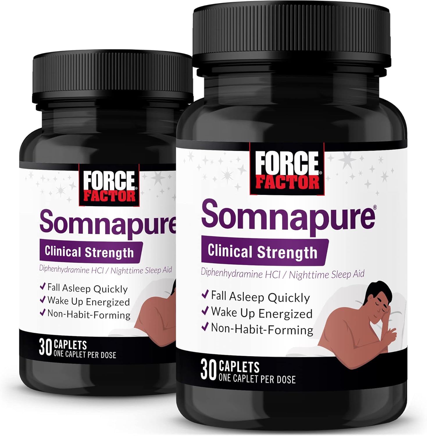Force Factor Somnapure Clinical Strength, 2-Pack, Sleep Aid For Adults With #1 Doctor-Recommended Sleeping Pill Ingredient Diphenhydramine Hcl, Non-Habit-Forming, Nighttime Sleep Support, 60 Caplets