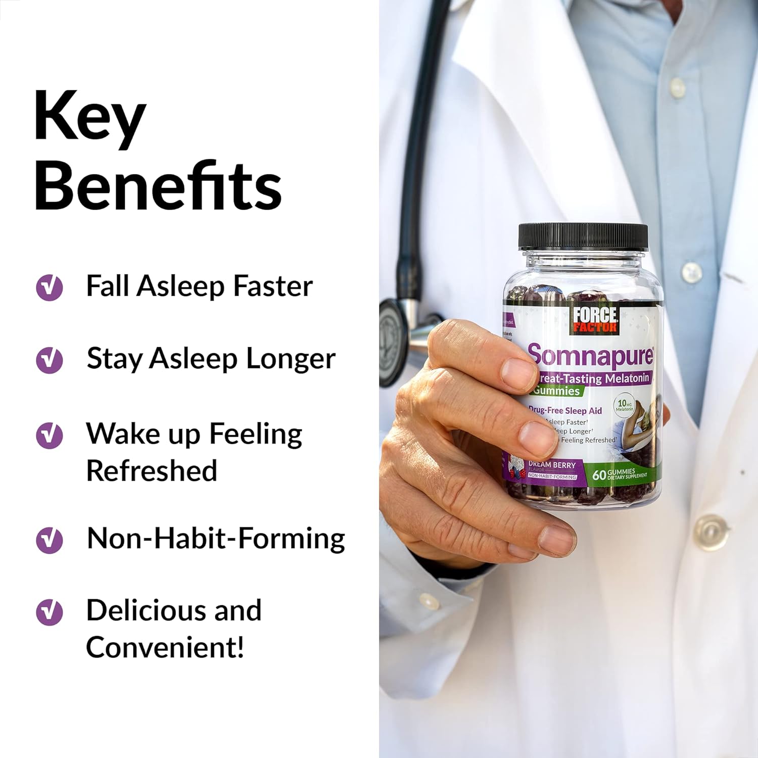 Force Factor Somnapure Gummies With Melatonin 10Mg, Melatonin Gummies, Dream Berry Flavor, 60 Gummies, Purple (Ffs-00849-Fg)