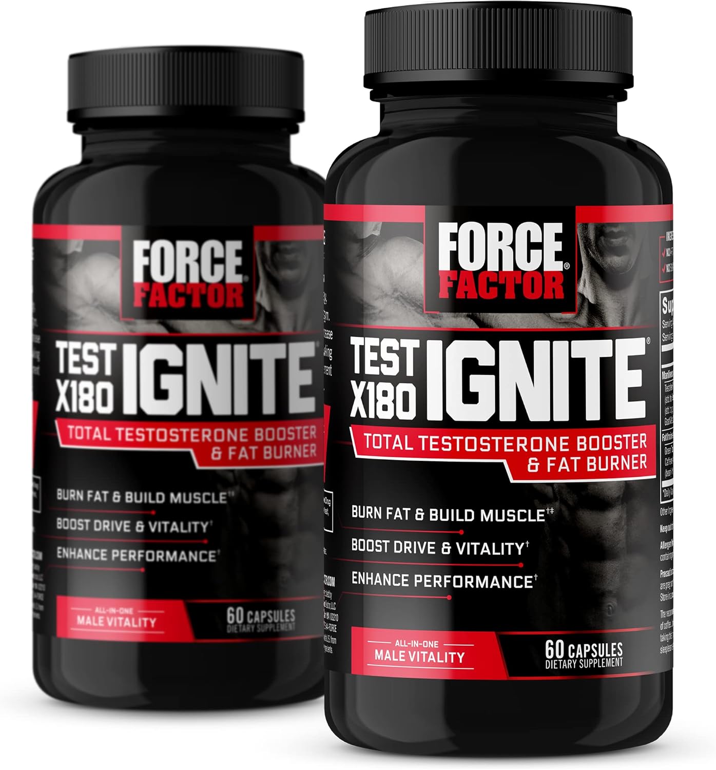 Force Factor Test X180 Ignite, Testosterone Booster & Fat Burner For Men, Testosterone Supplement To Burn Fat, Build Muscle, Increase Energy, And Boost Vitality And Performance, 60 Count (Pack Of 2)